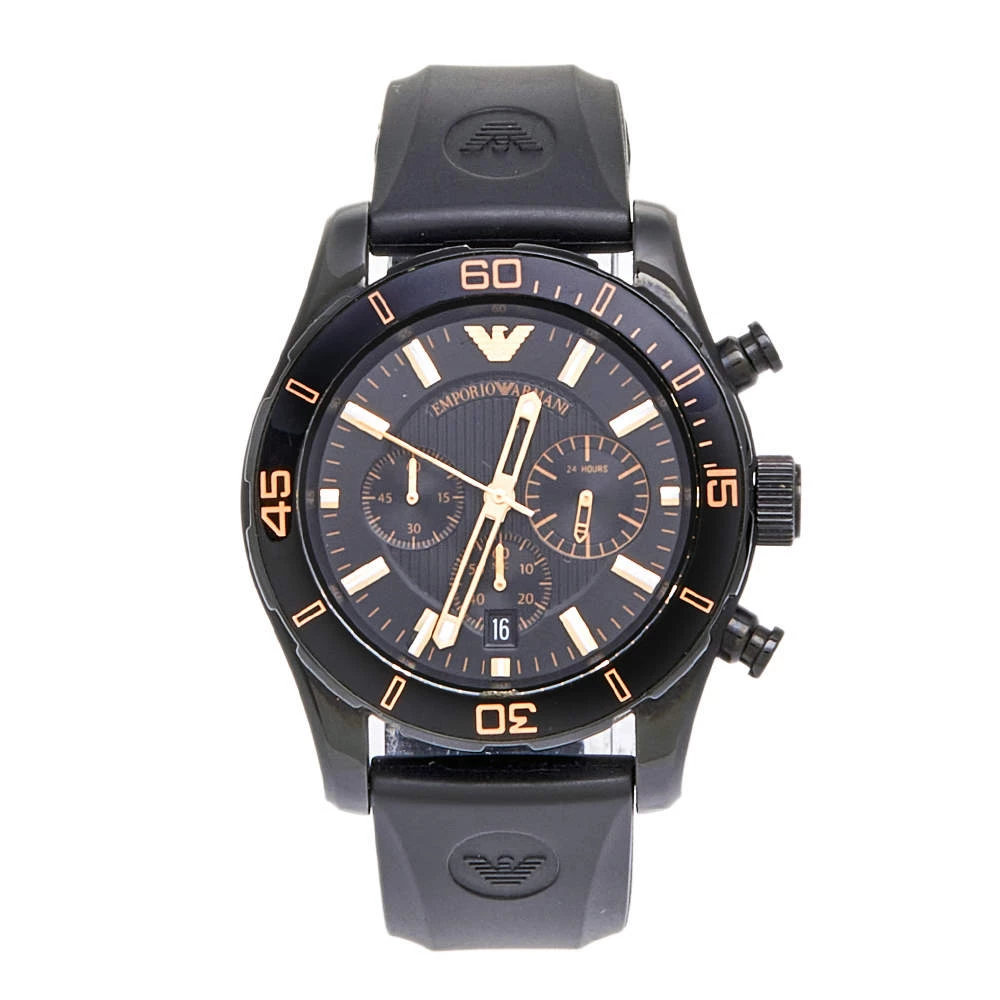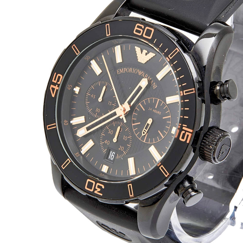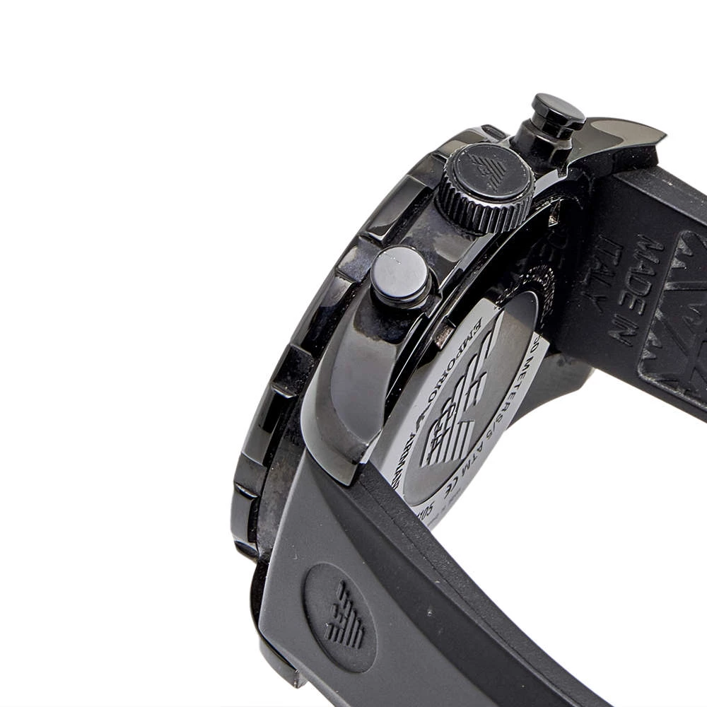 Add a luxurious accent to your wrist with this exquisite Sportivo timepiece from Emporio Armani. Made using PVD-coated stainless steel and rubber, the watch has a black dial with luminous markers, three hands, and a date window. The designer automatic watch is water-resistant up to 50 meters.