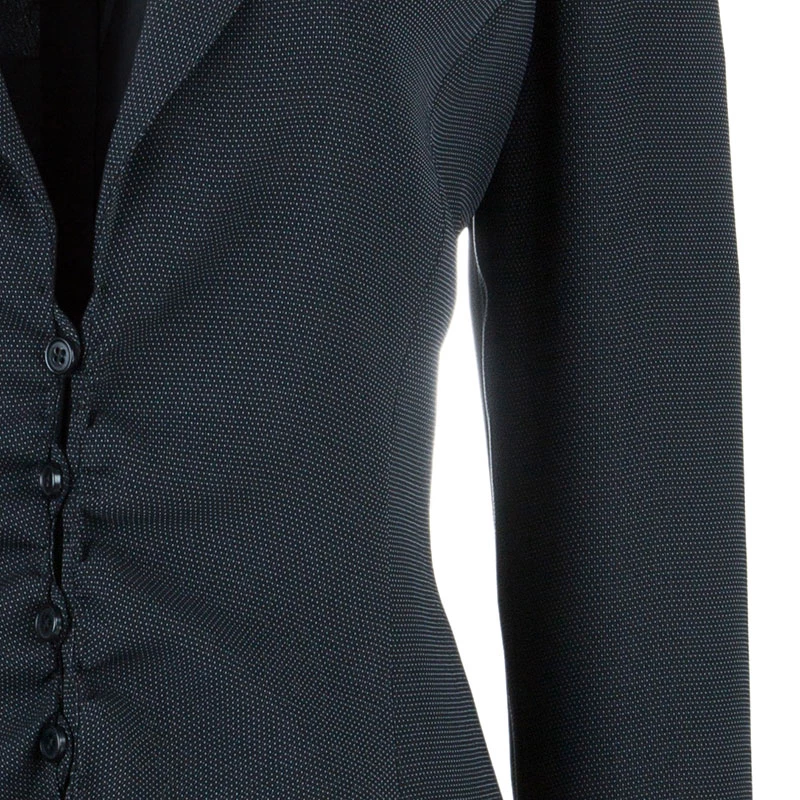 Wear these Emporio Armani Black Formal skirt suit as daily work attire. Made from Polyester-Viscose blend, the blazer features a button closure at the front with ruched details and a tapered waist line. The skirt comes in a straight fit with a front fly and a vent.