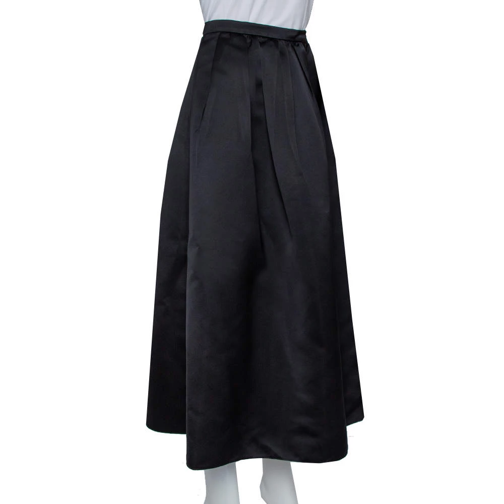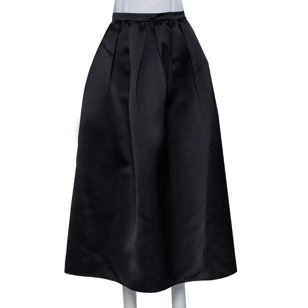 Make room in your closet for this creation from the house of Emporio Armani. Designed to offer an elegant look, this black skirt is made of satin and secured with a zipper. This skirt features a midi hemline and pleats that fall beautifully from the waistline.
