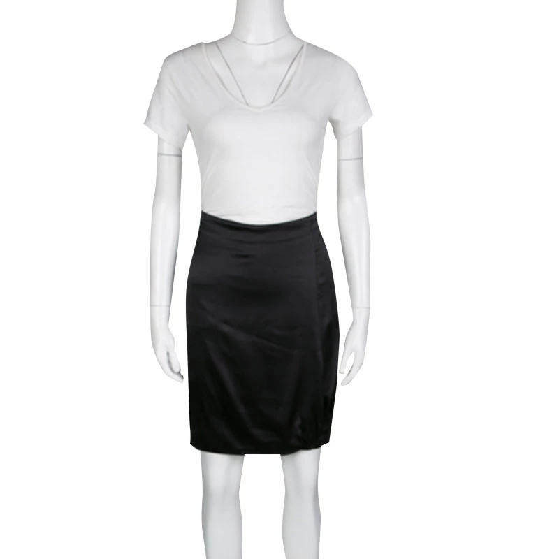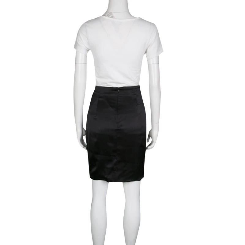 This pencil skirt from Emporio Armani is ideal for an understated formal look. Cut from silk with hints of stretch, the skirt features a satin twist detail on the hem, a style element that makes this piece all more chic. Wear this with fitted blouse and heels for a crisp look.