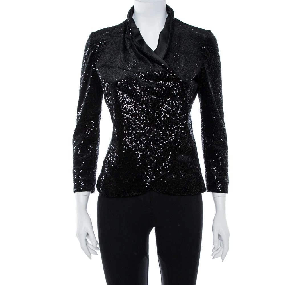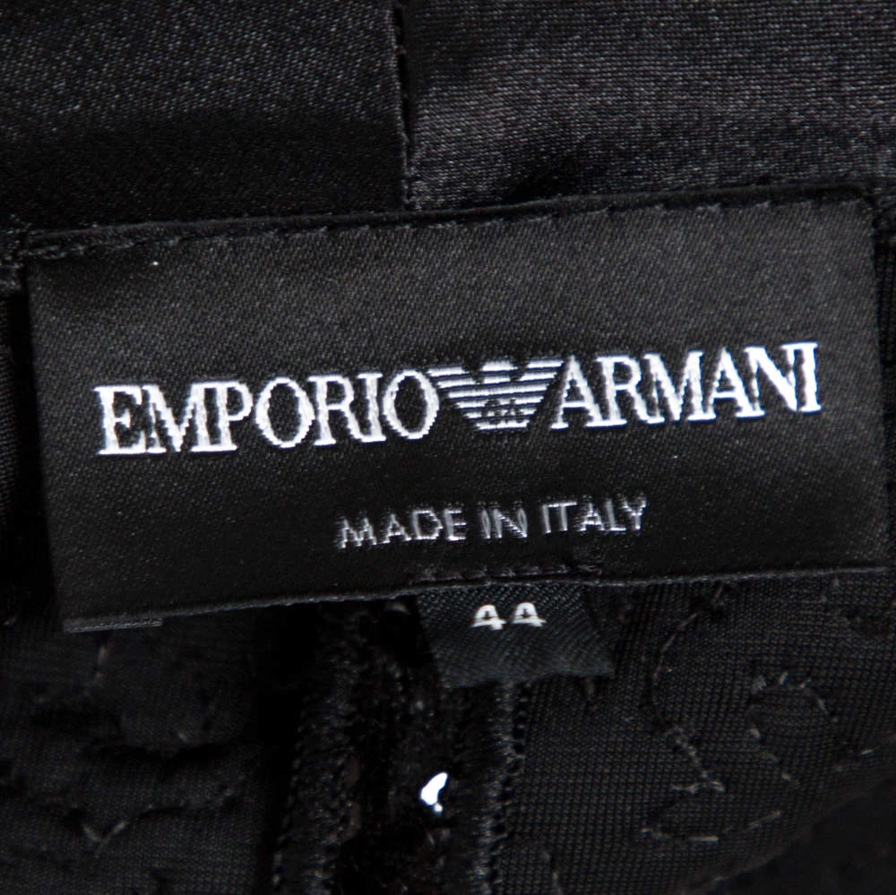A blazer as finely tailored as this one from Emporio Armani deserves to be in your closet. It has been made from quality materials and adorned with sequins. It flaunts a classic black shade and double-breasted style. It’ll look perfect with tailored trousers and pumps.