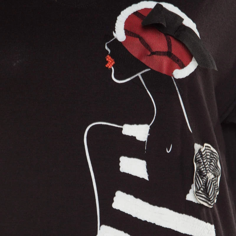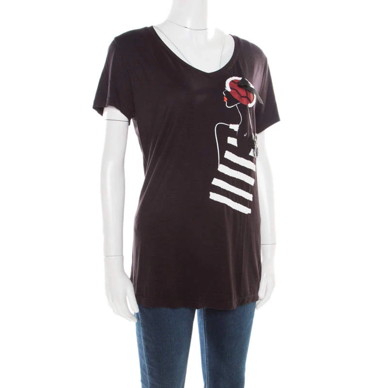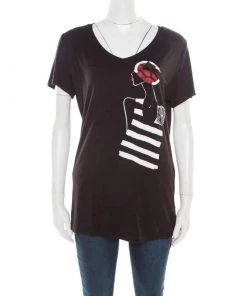 Bring the design of this Emporio Armani shirt into your casual wear and flaunt it with jeans and shorts. It comes in black with short sleeves and a lady motif on the front. Made from quality fabrics, this t-shirt exudes style as well as comfort.