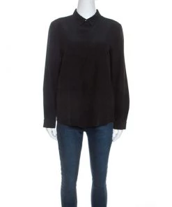 Trust Emporio Armani to come up with another exceptionally designed shirt like this one. Cut from 100% silk, this shirt comes in a classic shade of black. It comes with front button closure, cuffed sleeves, a simple collar and has a good fit. It exudes class and sophistication. It is the perfect choice for a host of formal events.
