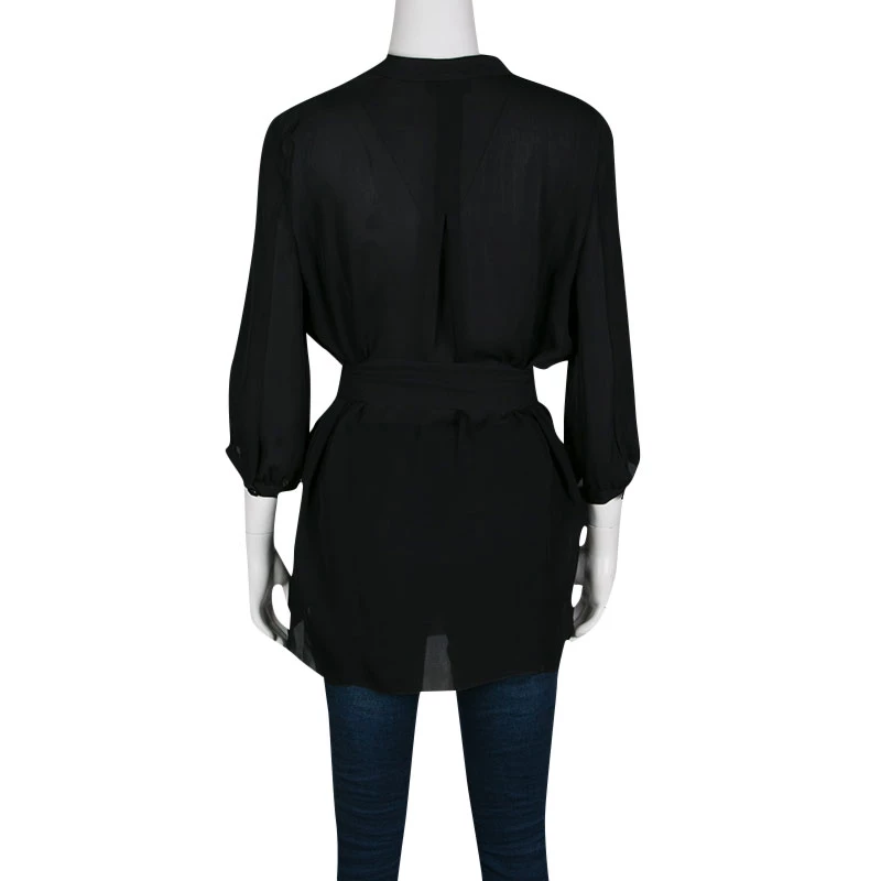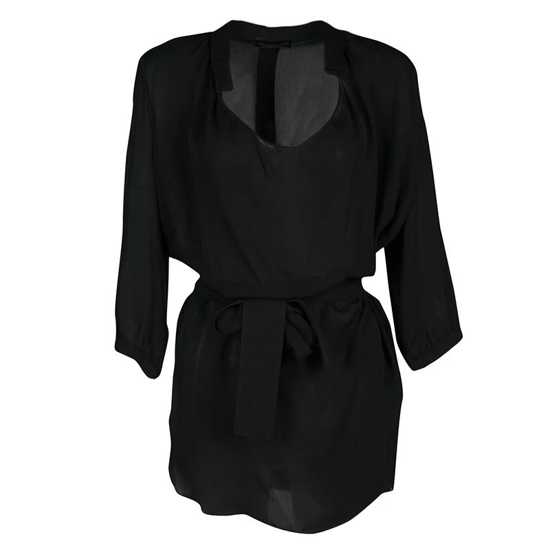Exude high style with this blouse from Emporio Armani. Cut from quality silk, the blouse has a simple design with long sleeves and a belt at the waist. You can team it with jeans or trousers and high heels.