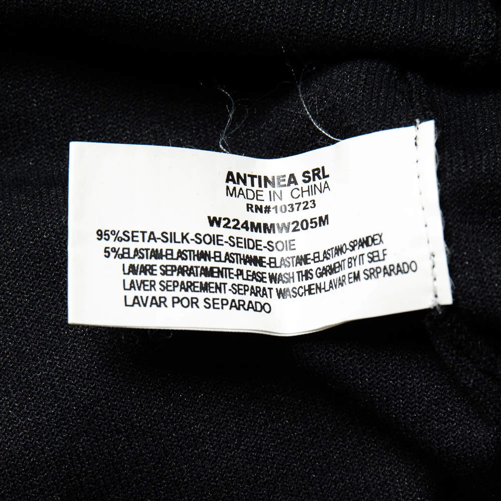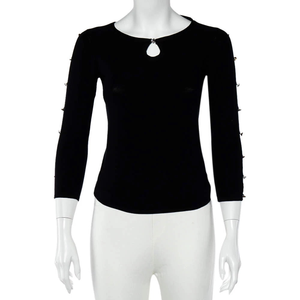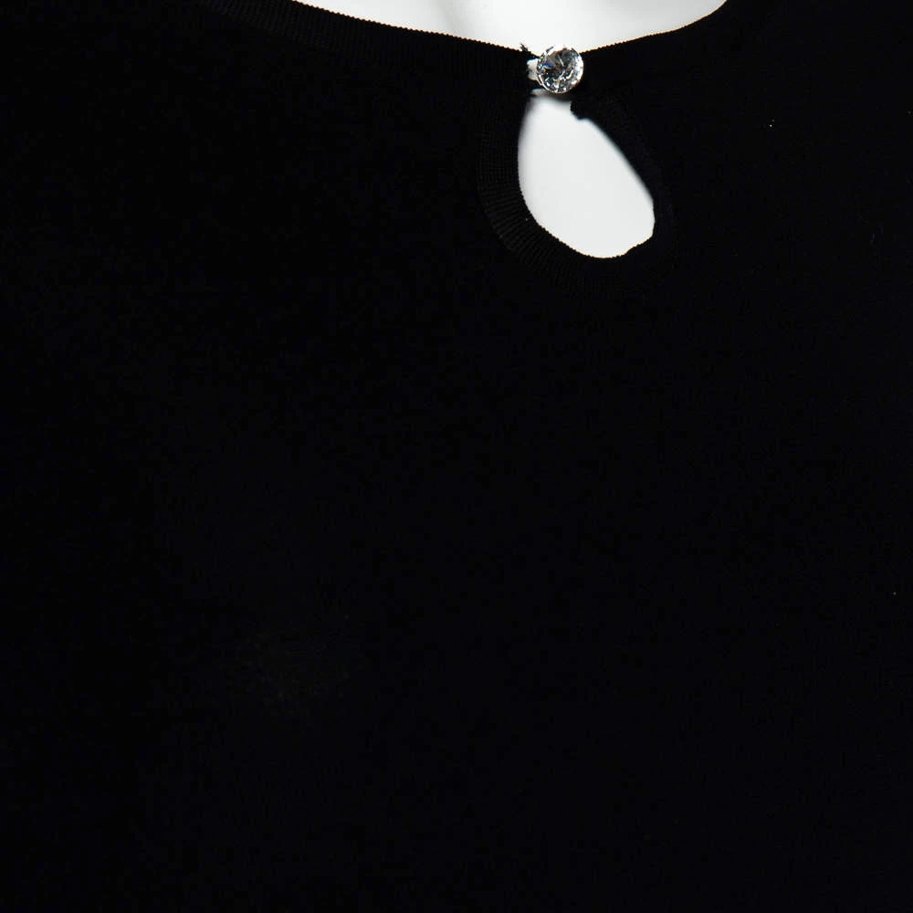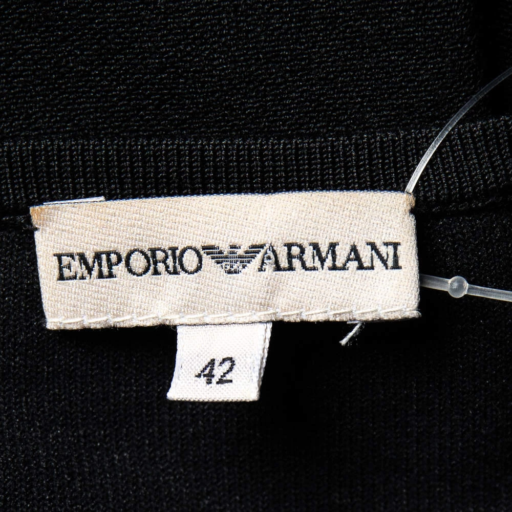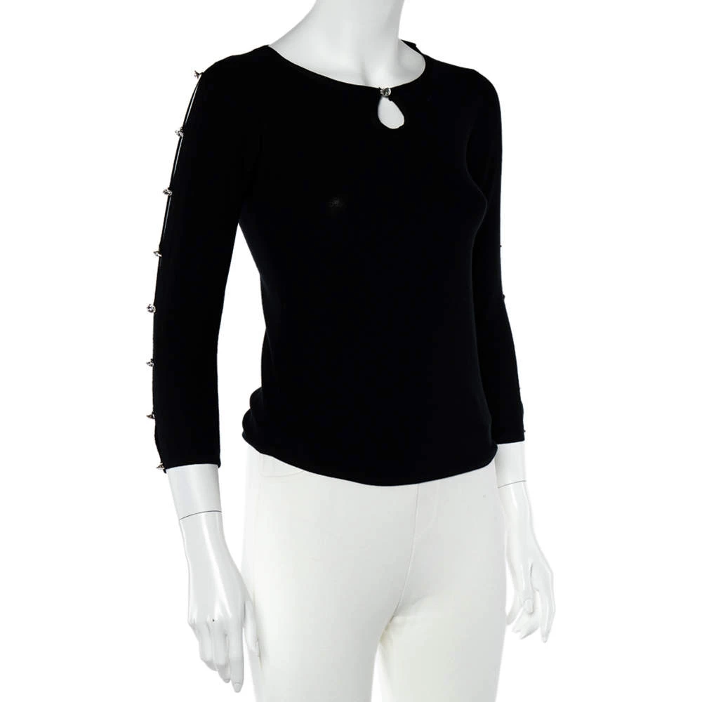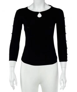 Exhibiting an elegant design, this Emporio Armani top is a closet staple. This black top adds flair and class especially when paired with contrasting bottoms. Made from luxurious silk, it has long sleeves detailed with crystals.