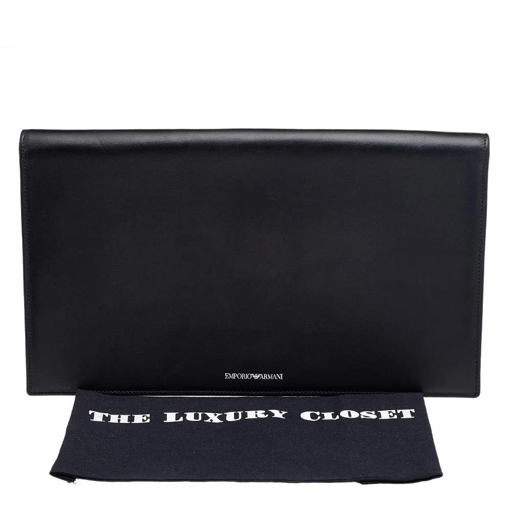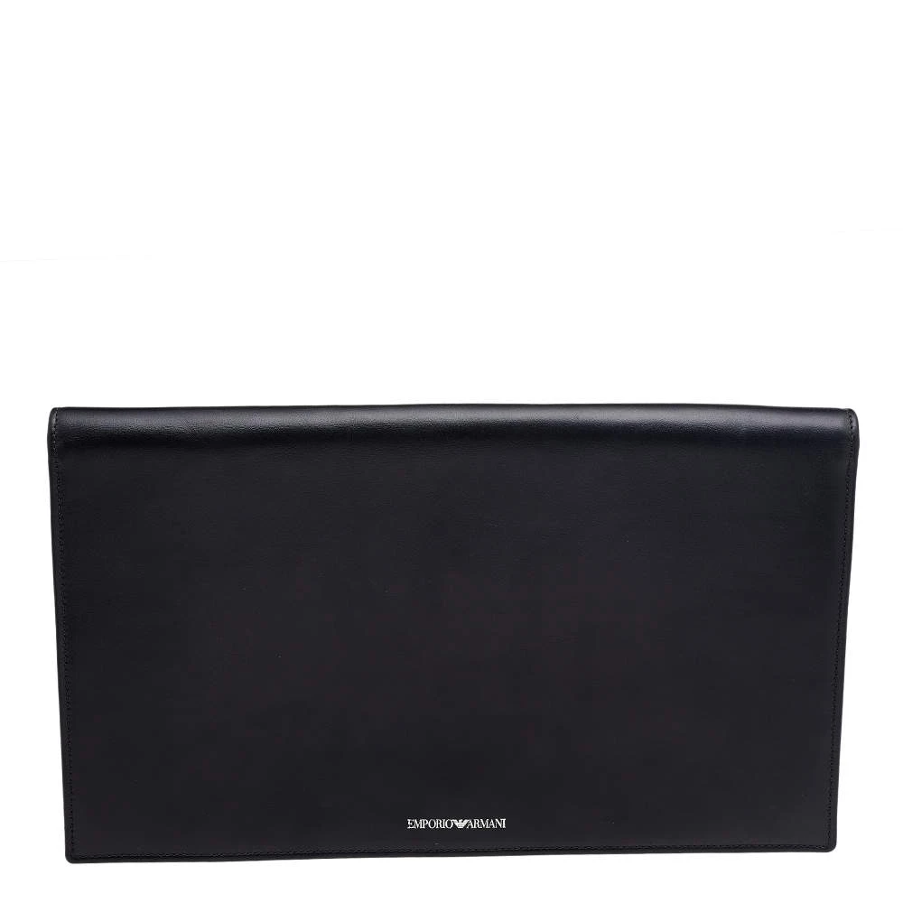 The black clutch from Emporio Armani goes well with an evening or casual day outfit. The clutch is crafted from smooth leather and it has a flap to secure the lined interior.