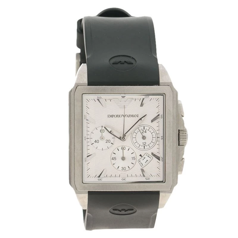 Flaunt this well-crafted timepiece from Emporio Armani on your wrist and be ready to receive compliments. Swiss made, it is held by a band made from rubber and stainless steel. The Chronograph watch follows a quartz movement and has a square shaped stainless steel case. The watch is water-resistant up to 50 meters and is equipped with sub dials and a buckle clasp.