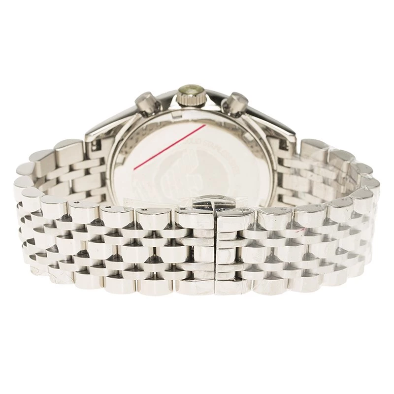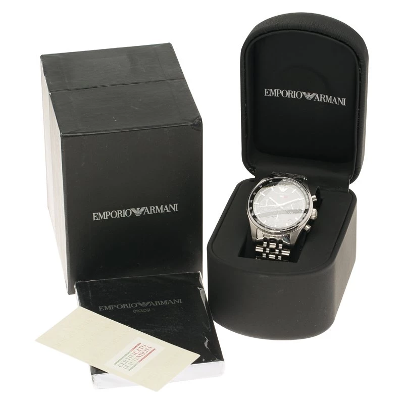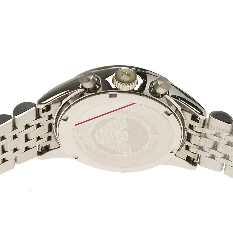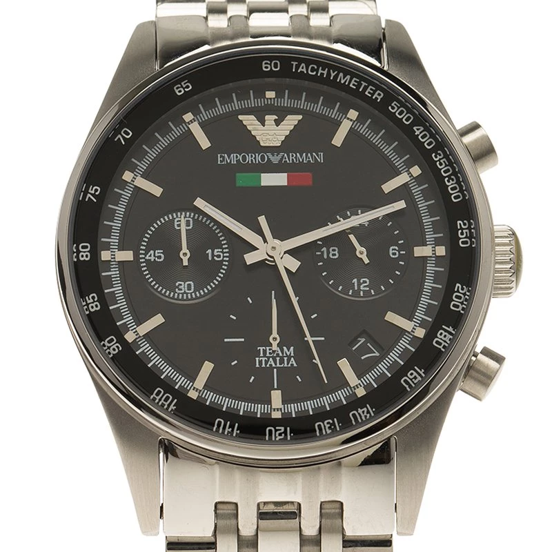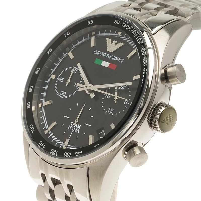 This smart wristwatch coming from Emporio Armani will make a suave punctuation. Made with stainless steel, it features a round bezel that profiles a functional black dial. This watch houses three hands, hour indicators, a date window and three sub-dials to enable its chronograph capabilities. The bracelet features a clasp closure and this 50M water resistant watch has a quartz movement.