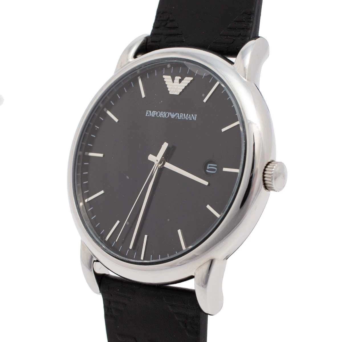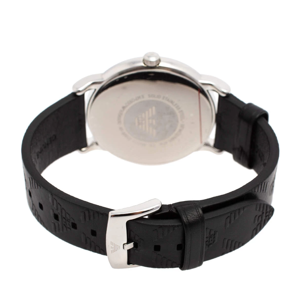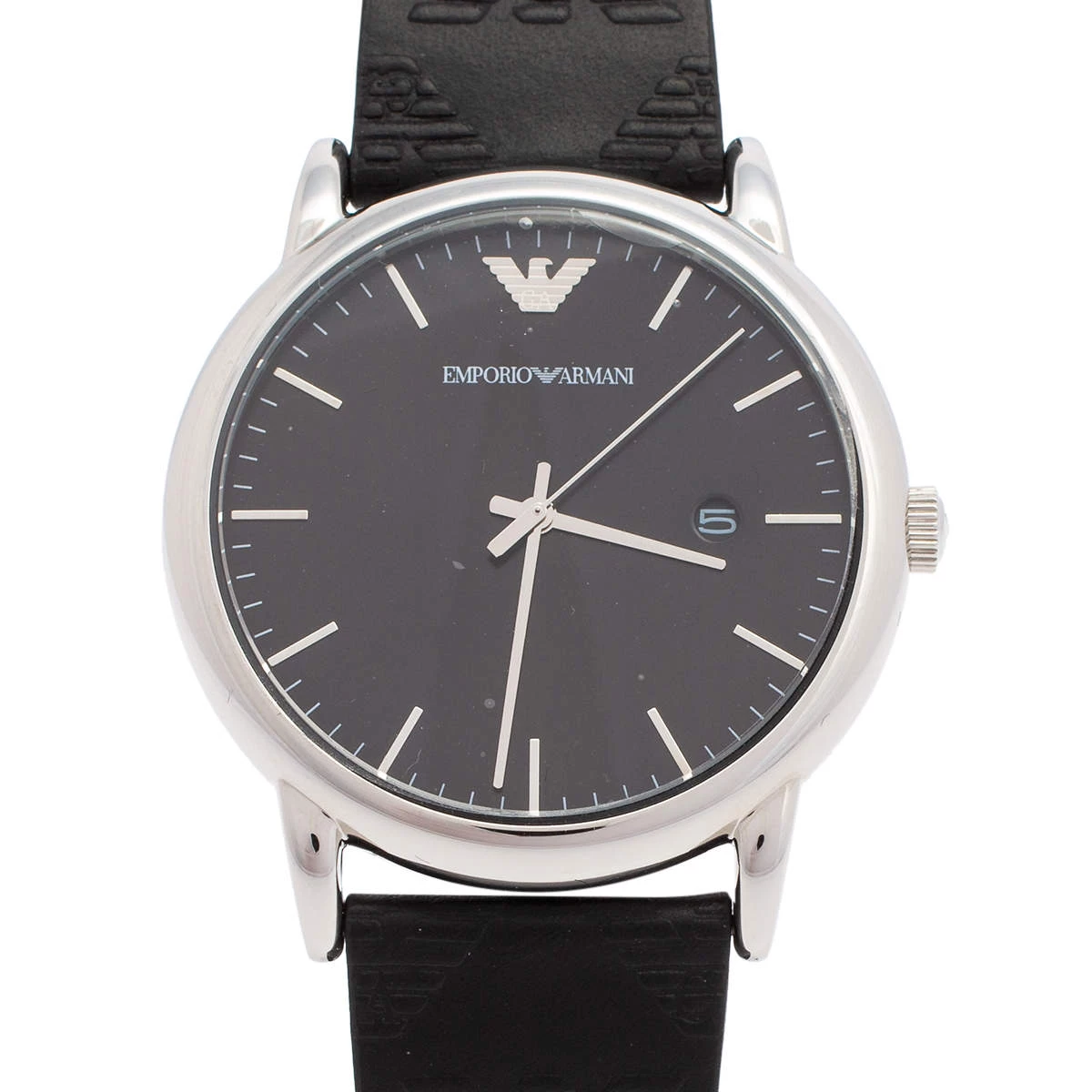 Let this Emporio Armani watch keep you on time and add to your everyday style. The stainless steel case comes with a well-designed black dial flaunting index hour markers, three hands, a date window, and the logo at the 12 o’clock position. It is complete with a smooth leather bracelet.
