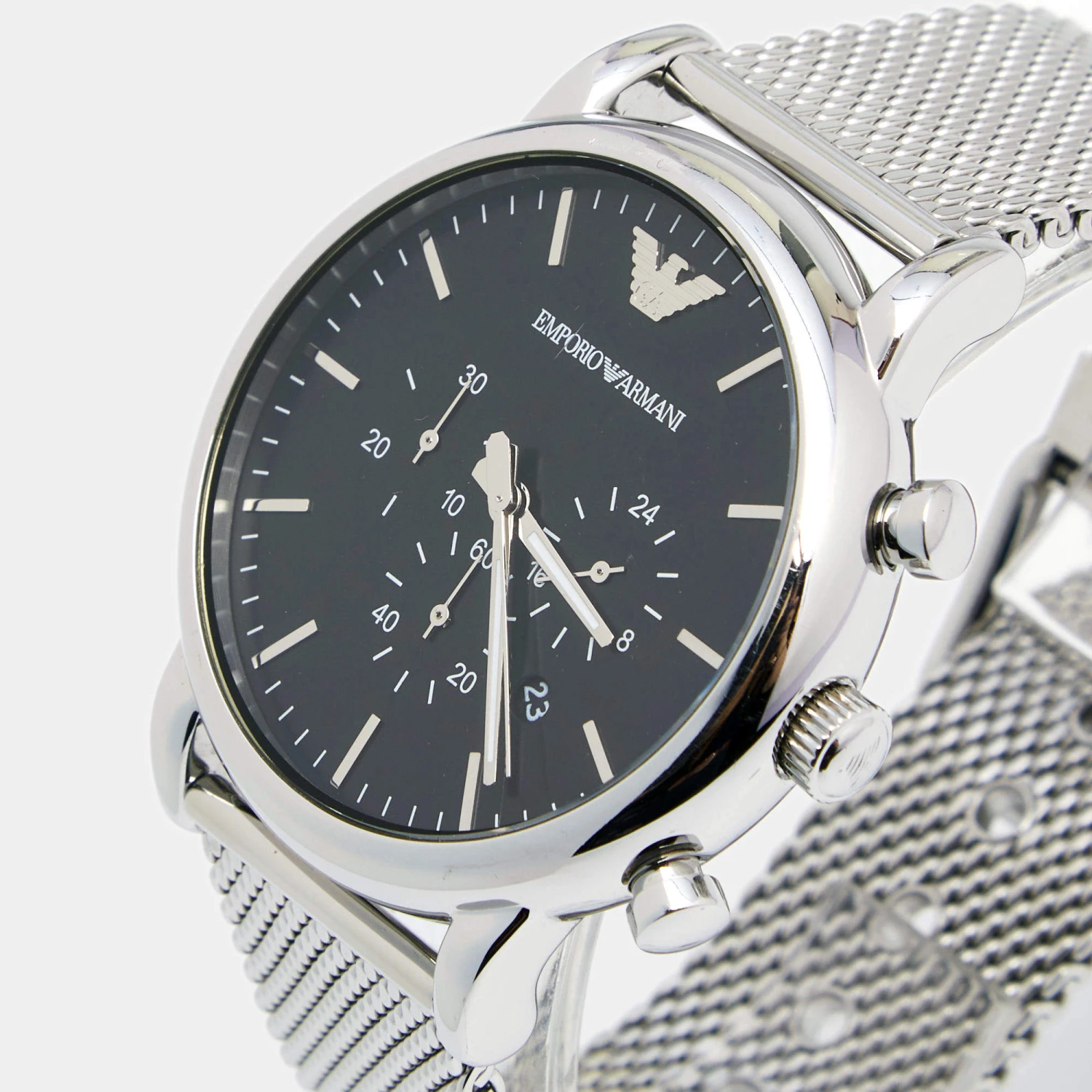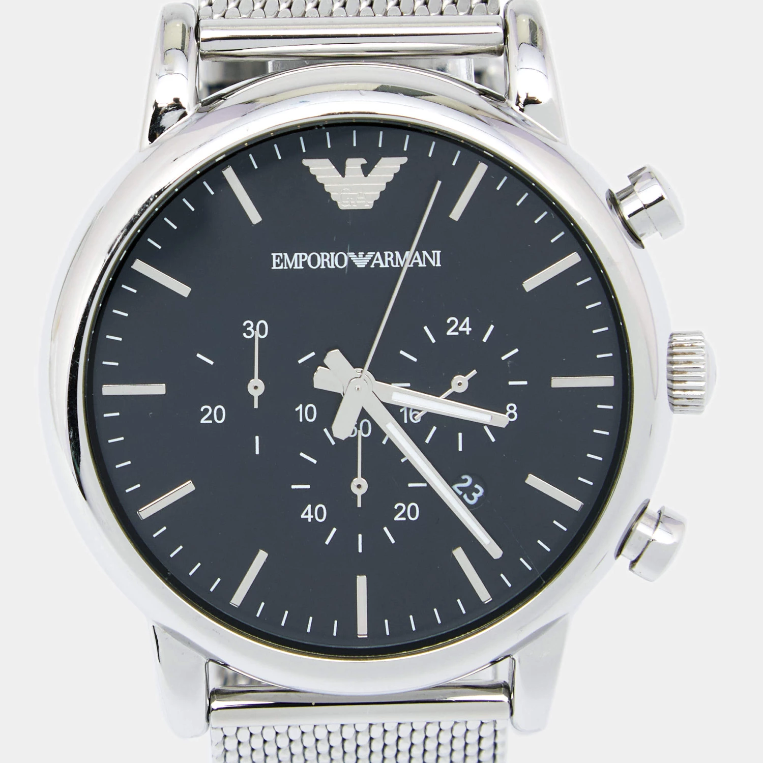 This Emporio Armani watch is characterized by its skillful craftsmanship and understated charm. Meticulously constructed to tell time in an elegant way, it comes in stainless steel. The timepiece is powered by quartz movement and is a seamless blend of innovative design and flawless style. Cease the wait and make this stunning creation yours today!