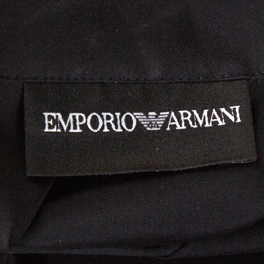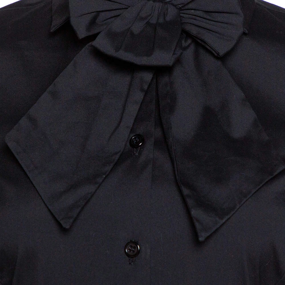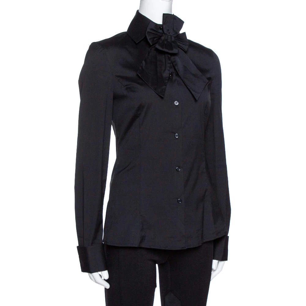 This Emporio Armani top is perfect for formal occasions and will deliver s sophisticated style statement every time you put it on. Crafted from stretch cotton, it carries a classic shade of black. It has a button front, long sleeves, a simple collar and a detachable bow detail.