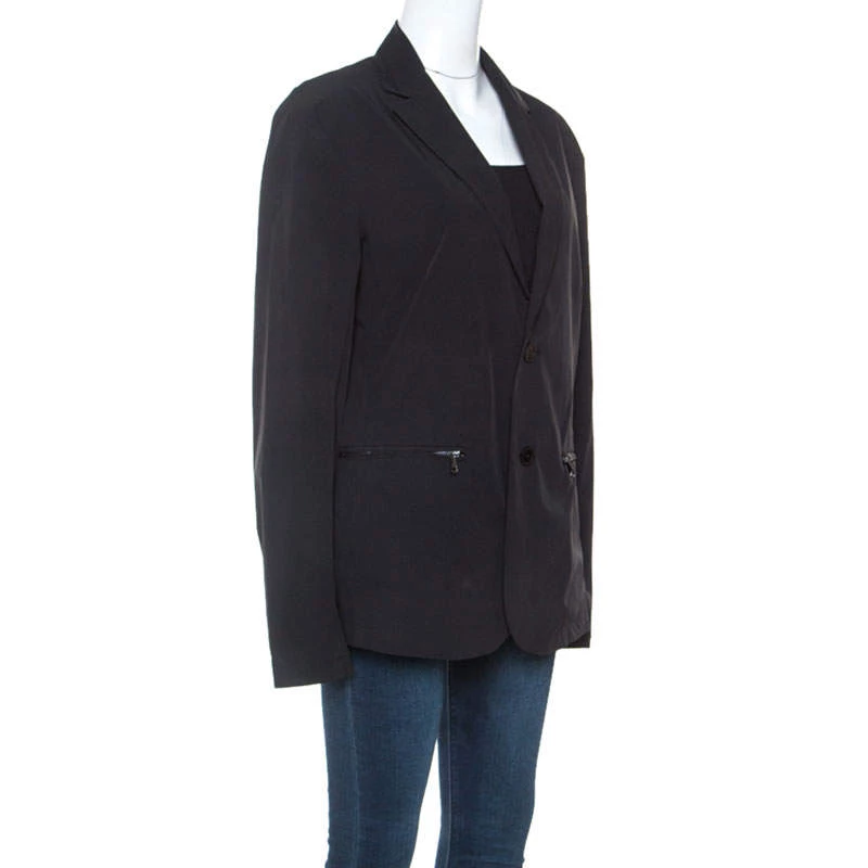 A blazer as finely tailored as this one from Emporio Armani deserves to be in your closet. It has been made from stretch nylon and it comes in black with zipped pockets and buttons on the front.
