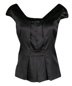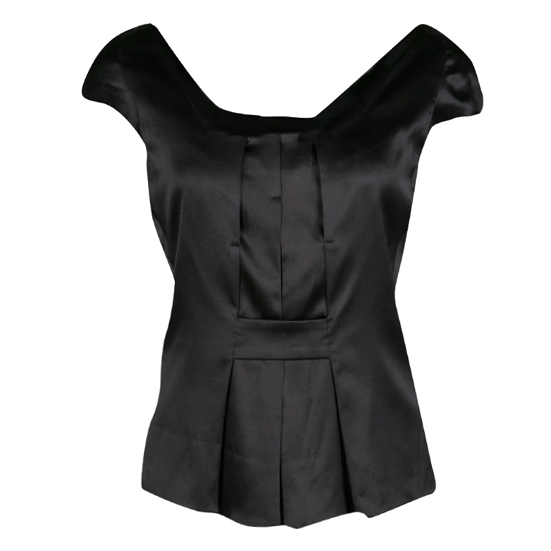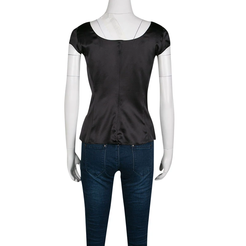 This Emporio Armani top has been crafted from silk in a classy black shade and styled to complement your body. It has cap sleeves and neat fold detailing on the front. You’ll look amazing when you wear this top with pencil skirts and stilettos.