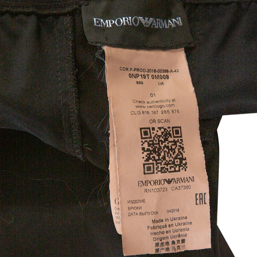 Everyone deserves a luxe pair of Emporio Armani trousers in their wardrobe. These ones are perfect. They are made from quality cotton in black and feature front zip closure, an elasticized waistline and a great fit.