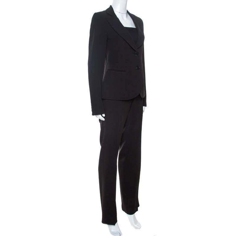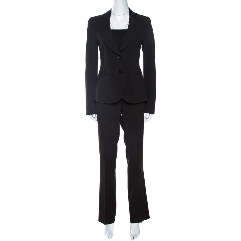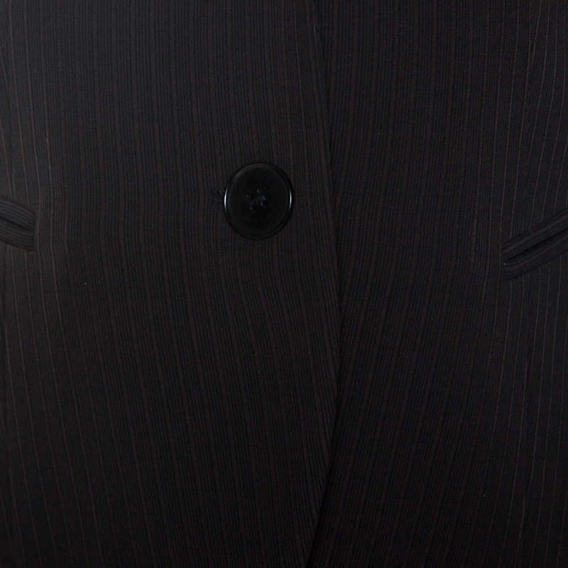 Nail the formal look in a stylish way with this suit from Emporio Armani. Finely tailored from quality materials, the suit carries a black striped pattern with a blazer featuring notched lapels and front buttons, while the trousers feature belt loops and straight legs. This suave suit has been made for the modern woman and it deserves a place in your closet.