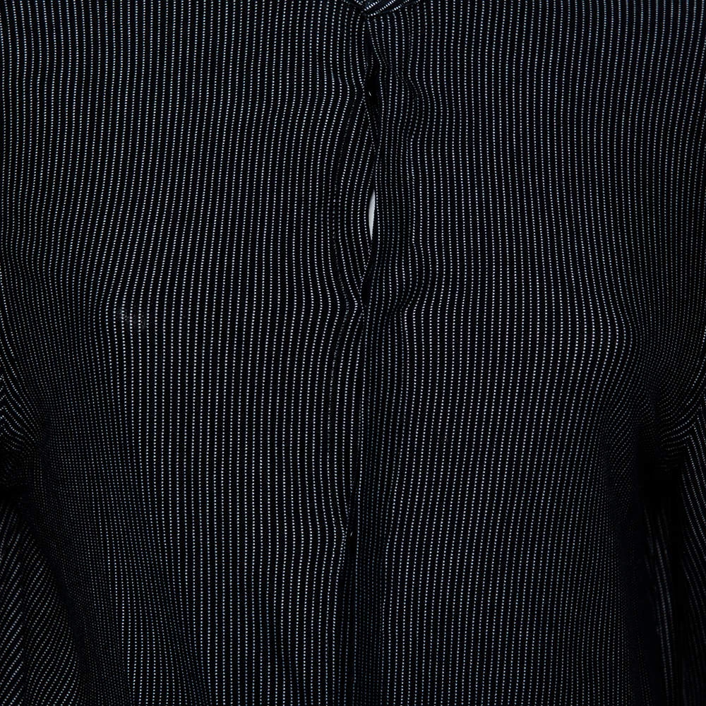 This cotton knit shirt from Emporio Armani brings a comfortable cut and a simple, casual design. The long sleeve shirt has stripes, long sleeves, full front buttons, and a long hemline.