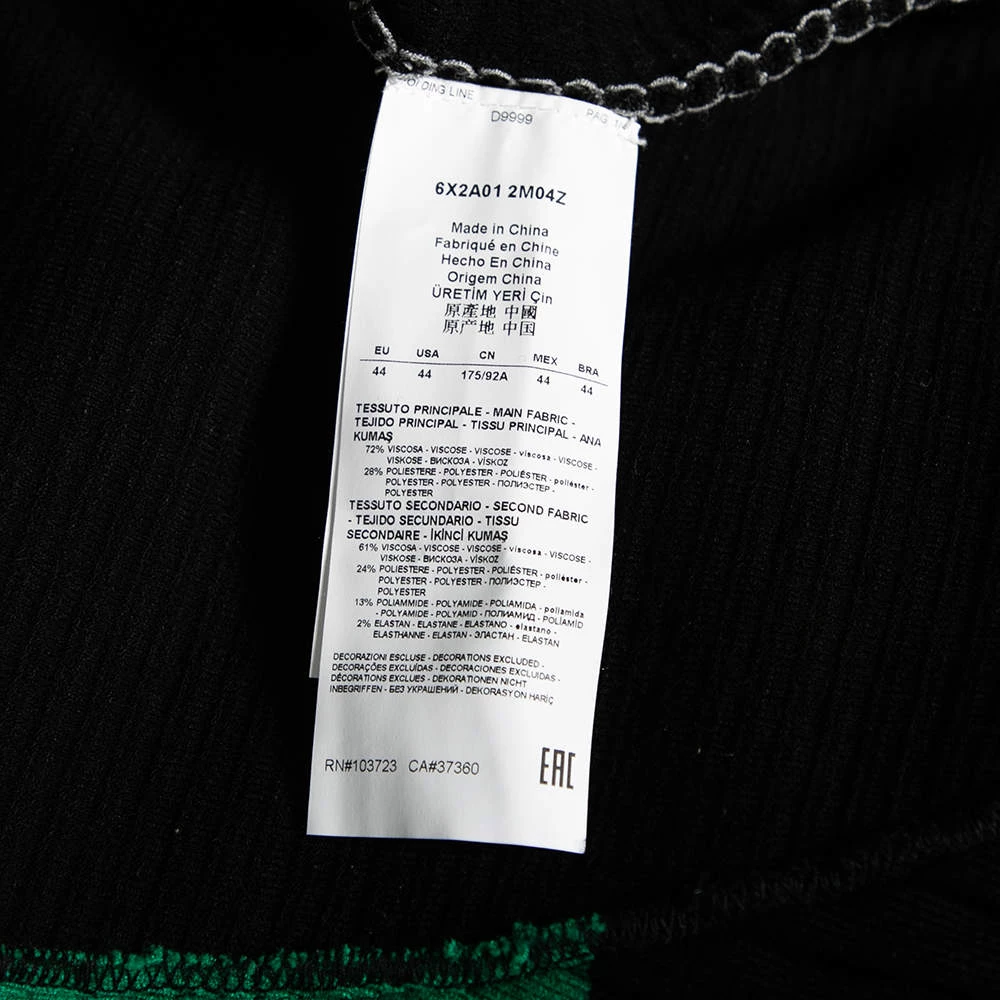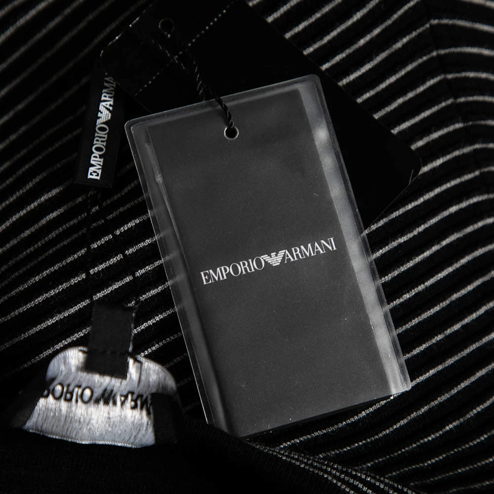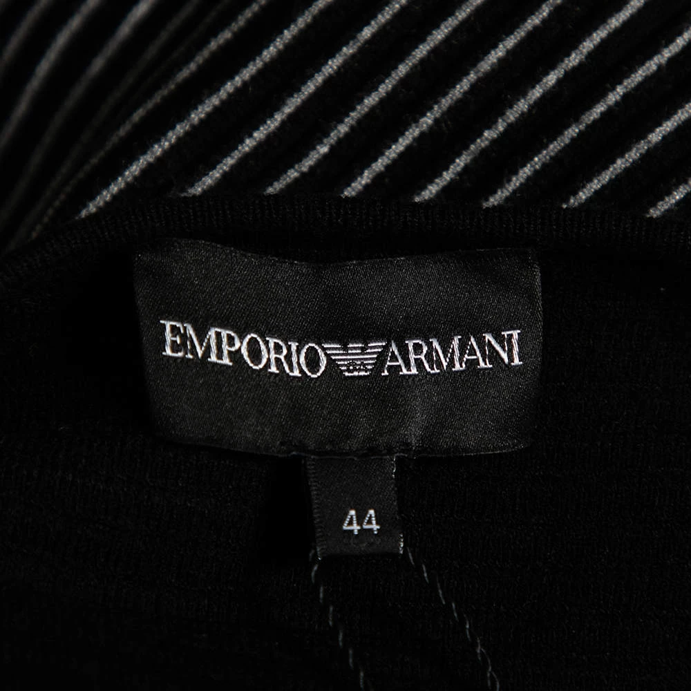 This gorgeous dress from Emporio Armani is a creation you must own! It is made from black striped knit fabric, which exhibits pleated formations, long sleeves, and contrasting insets. Stay casual and comfortable as you wear this dress.