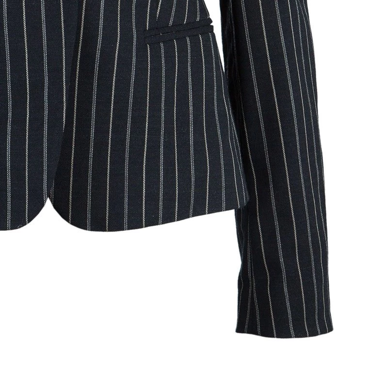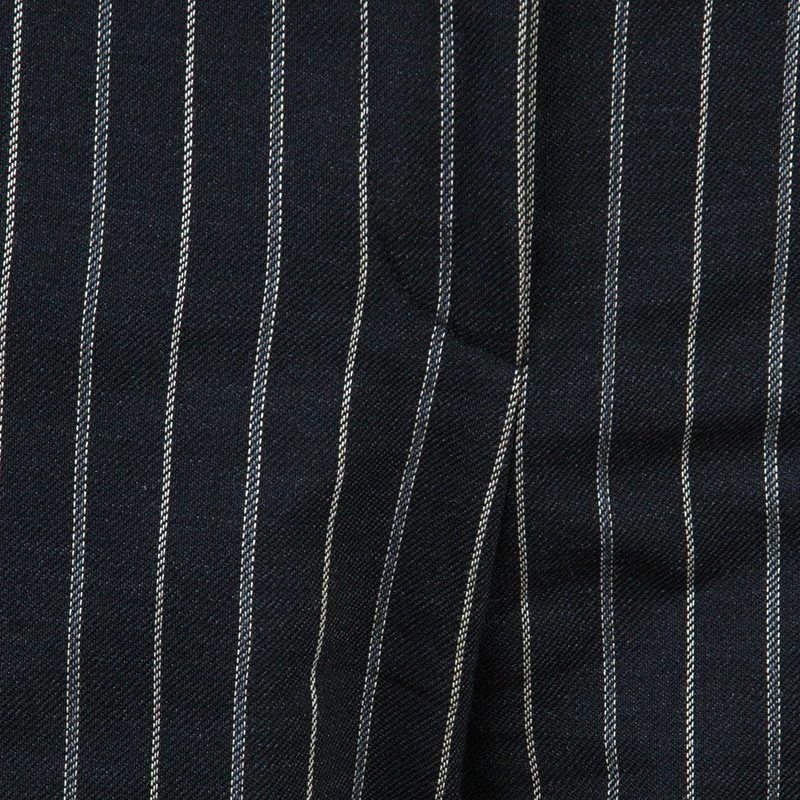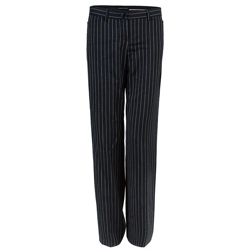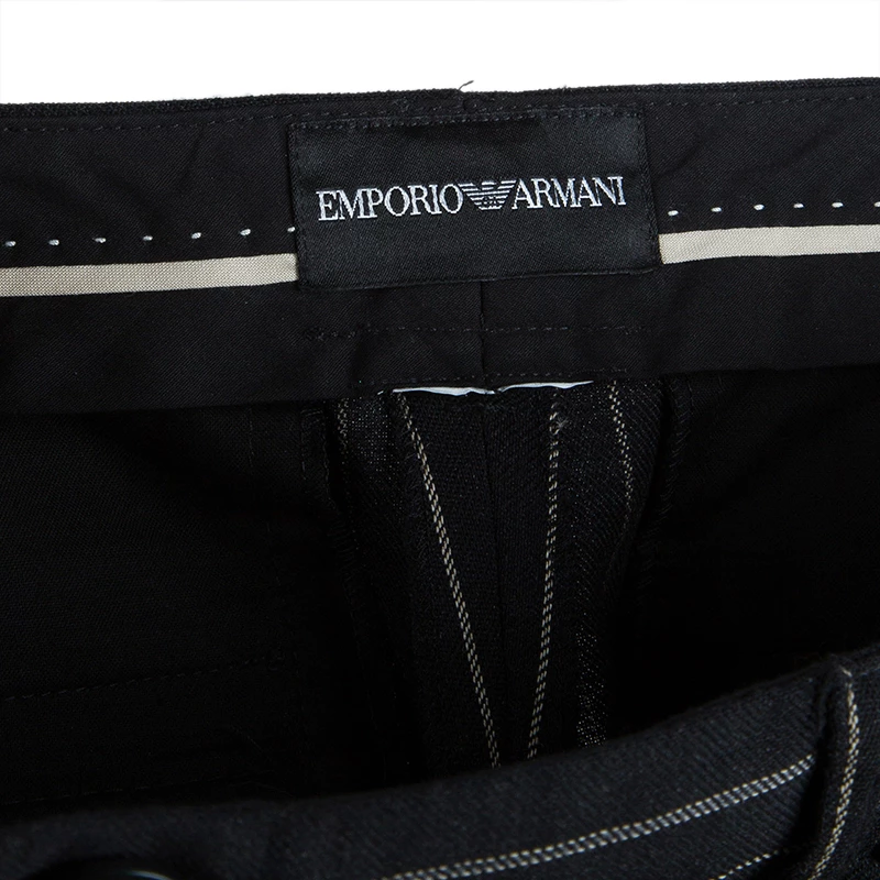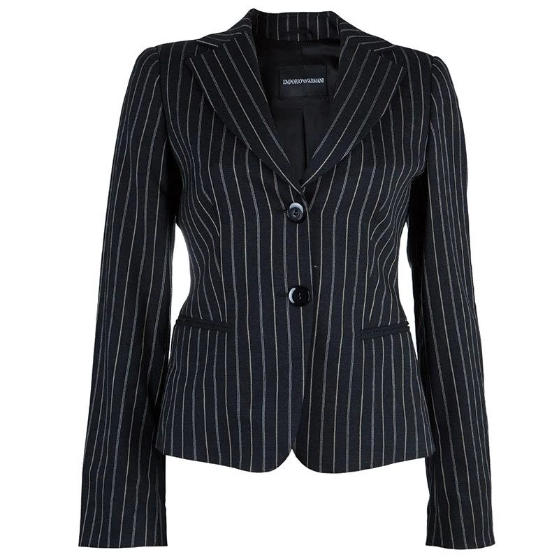 A stunning piece, this Emporio Armani suit will be your stylish companion in your formal meetings. This pant suit comes crafted in black and white srtiped virgin wool. The jacket features lapel collars with a button fastening and comes with front pockets. The matching pants are cut in a relaxed straight cut and are equipped with front zip fly and a button fastening.