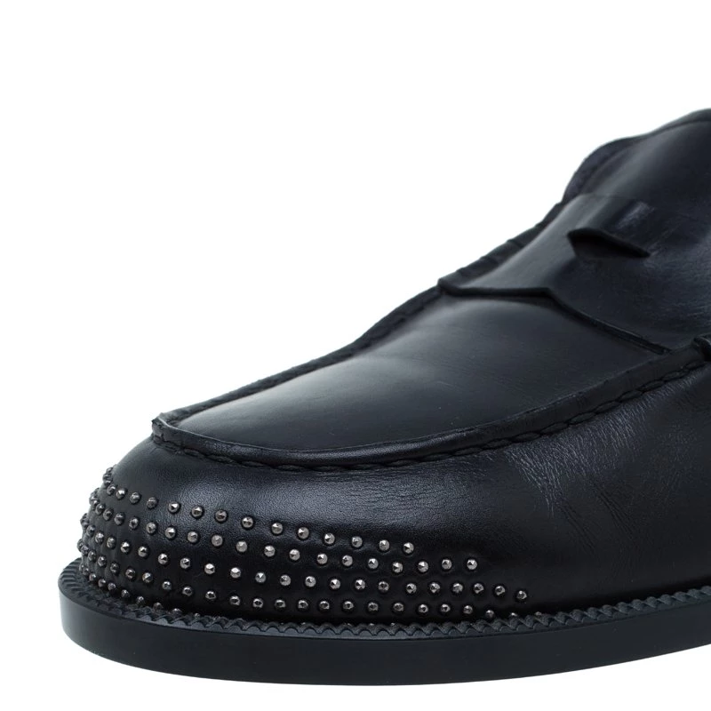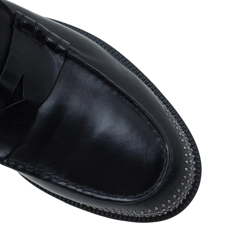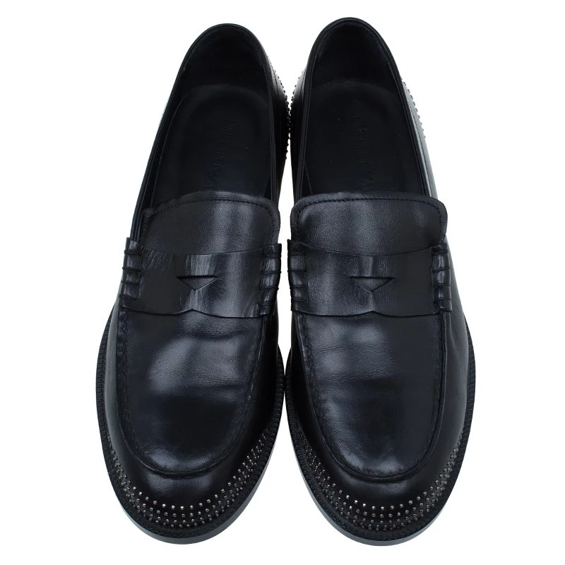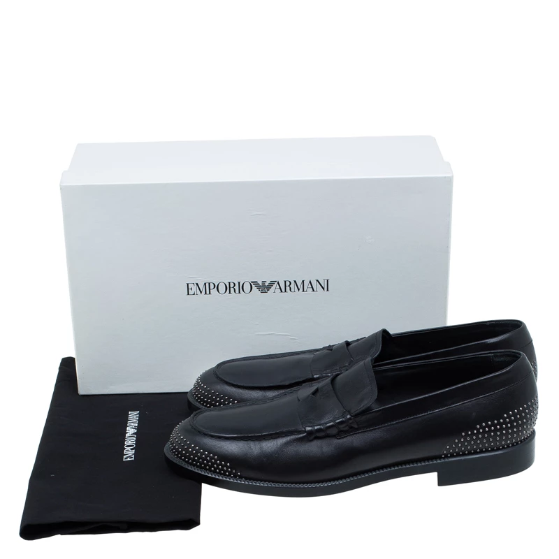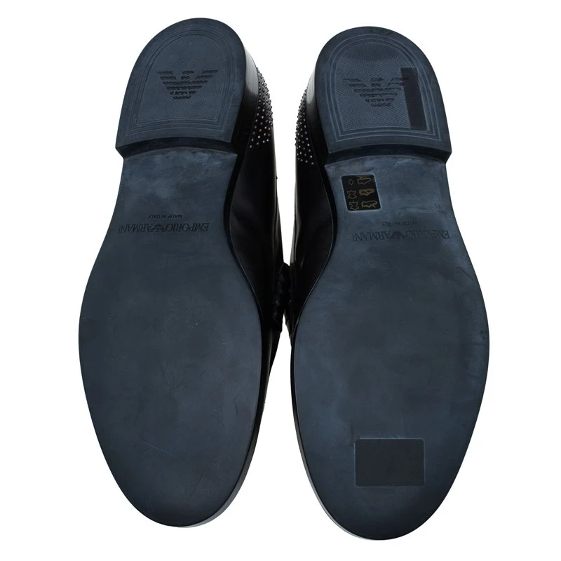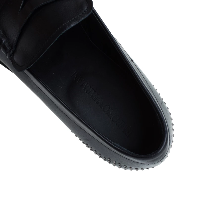 Skillfully crafted these Penny Loafers by Emporio Arman support an elegant finish and a comfortable fit. Assisted with black leather crafting, they feature catchy studded details at the rounded toes and counters. The leather-lined insoles and the 2.5cm heels keep the comfort maintained!