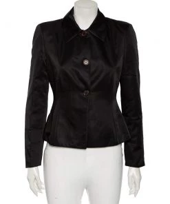 Your wardrobe can never be complete without a classic black shirt like this one. From Emporio Armani, this shirt is made from black synthetic fabric and shows a button-front feature and long sleeves. Pair this shirt with trousers and pumps to achieve a smart-formal look.