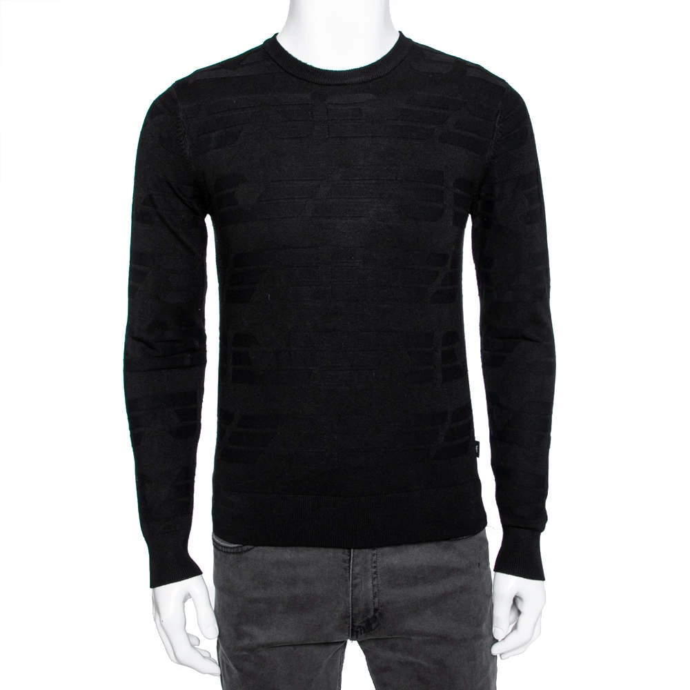 This suave black sweater by Emporio Armani is made from knit fabric. It features a simple crew neck and long sleeves. Wear it with a pair of jeans or trousers for an off-duty look.