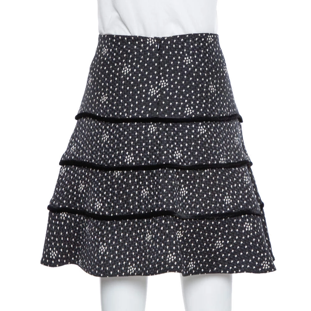 Perfect for fun outings with friends, this stylish Emporio Armani skirt is a must-have. Crafted from a lovely blend of silk & wool that results in a textured exterior. The skirt has a printed expanse that is further styled with tiers. It is finished with a zip closure.