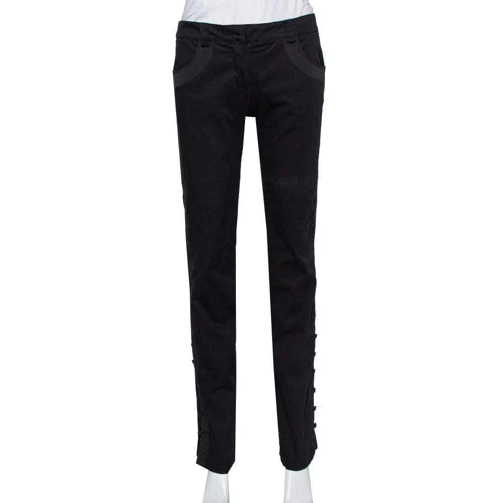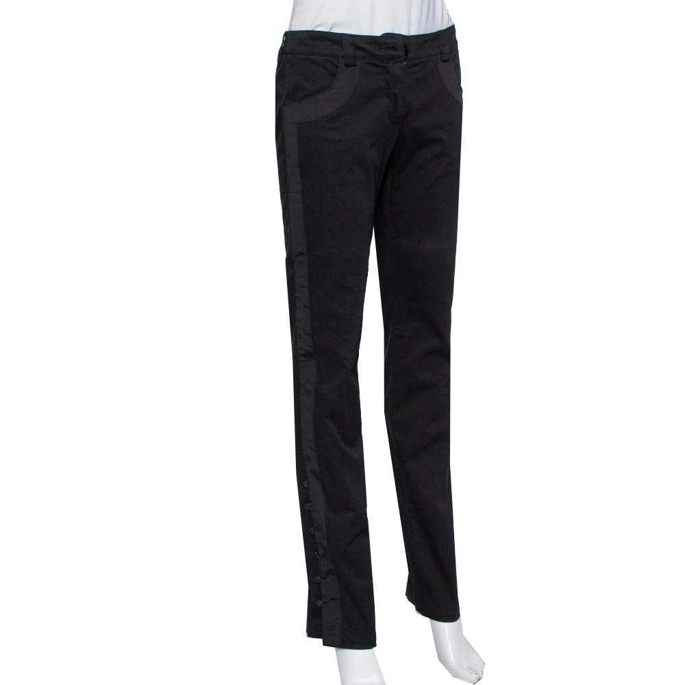 This pair of trousers by Emporio Armani ensures a style that is full of comfort. Made using cotton and elastane blend, the trouser in black has a straight-leg silhouette, front zip closure, and distinct trims on the pockets and sides.