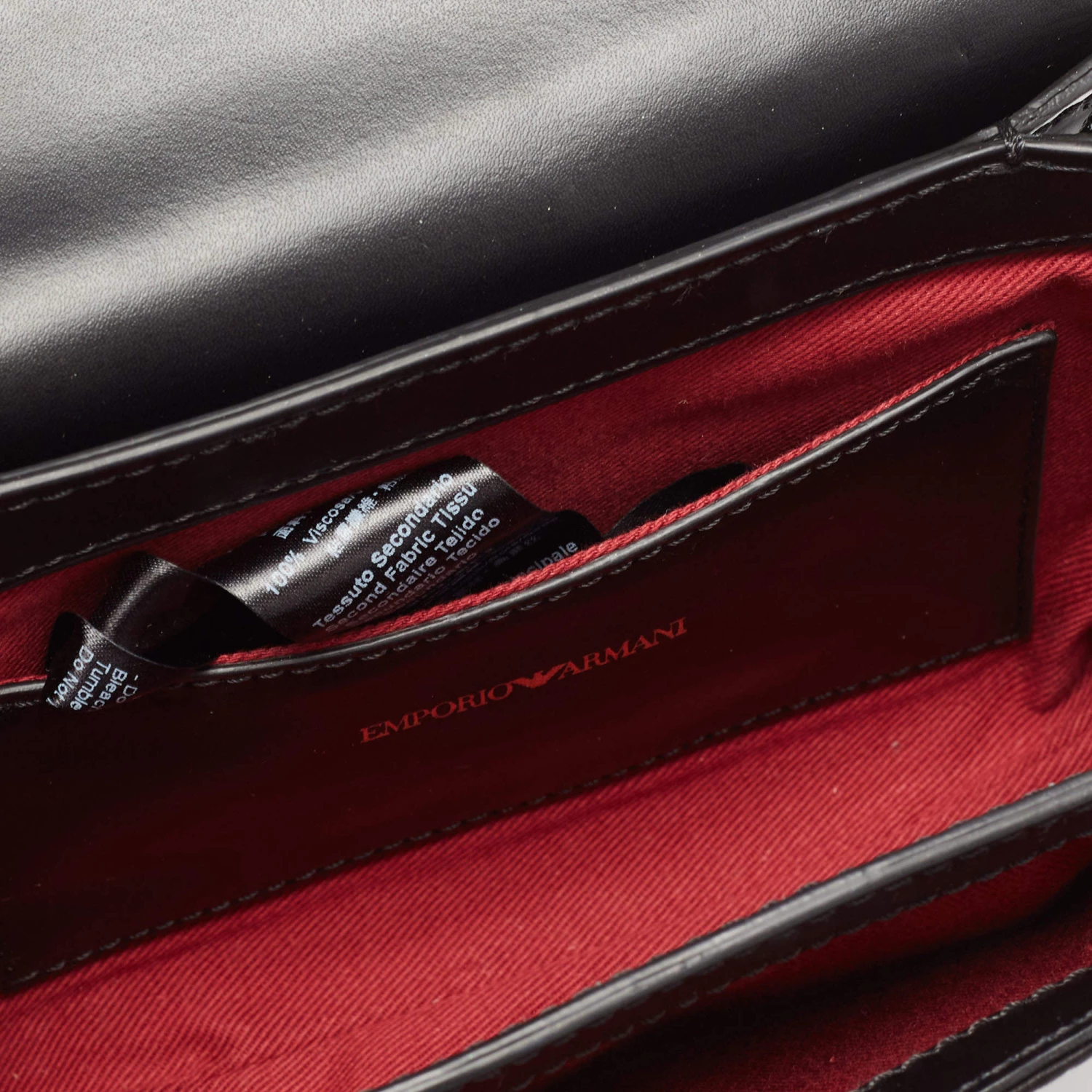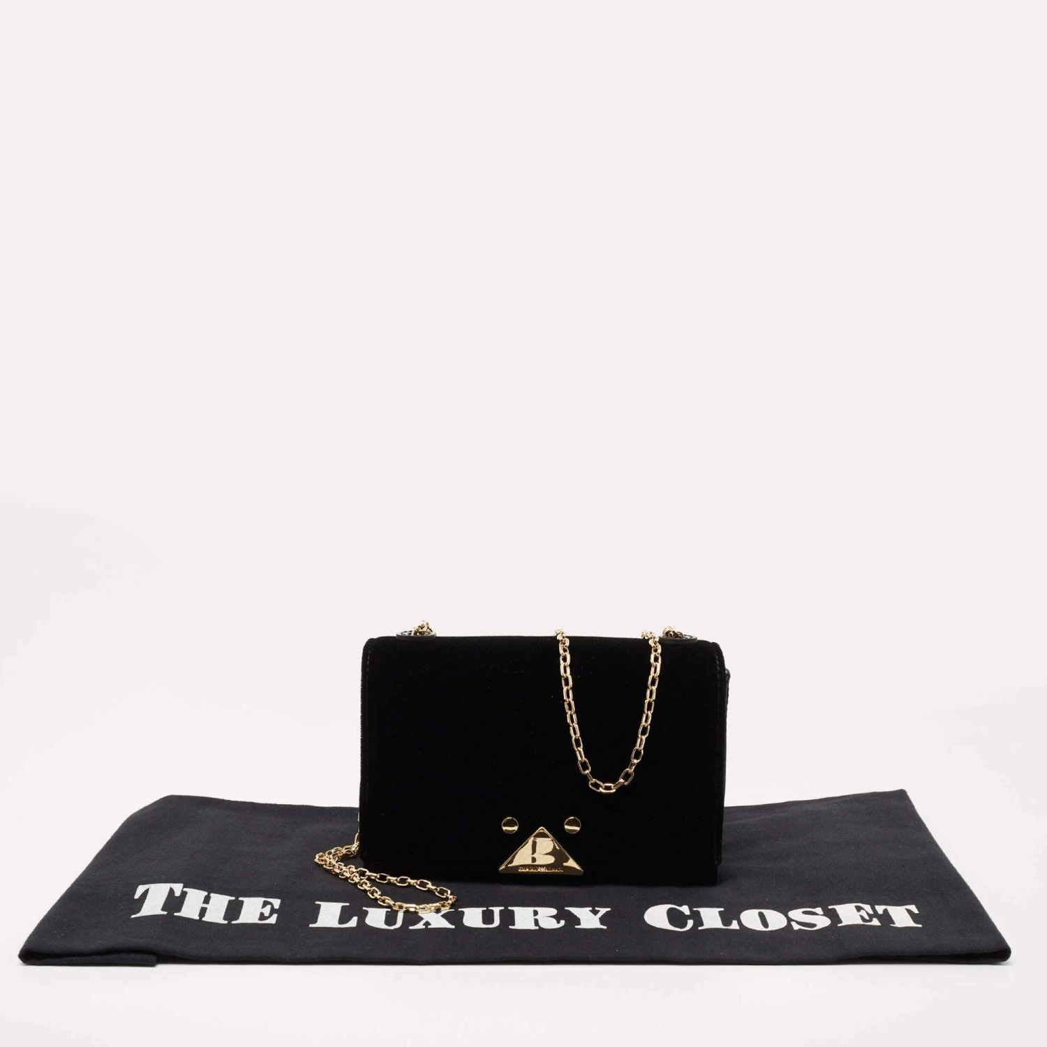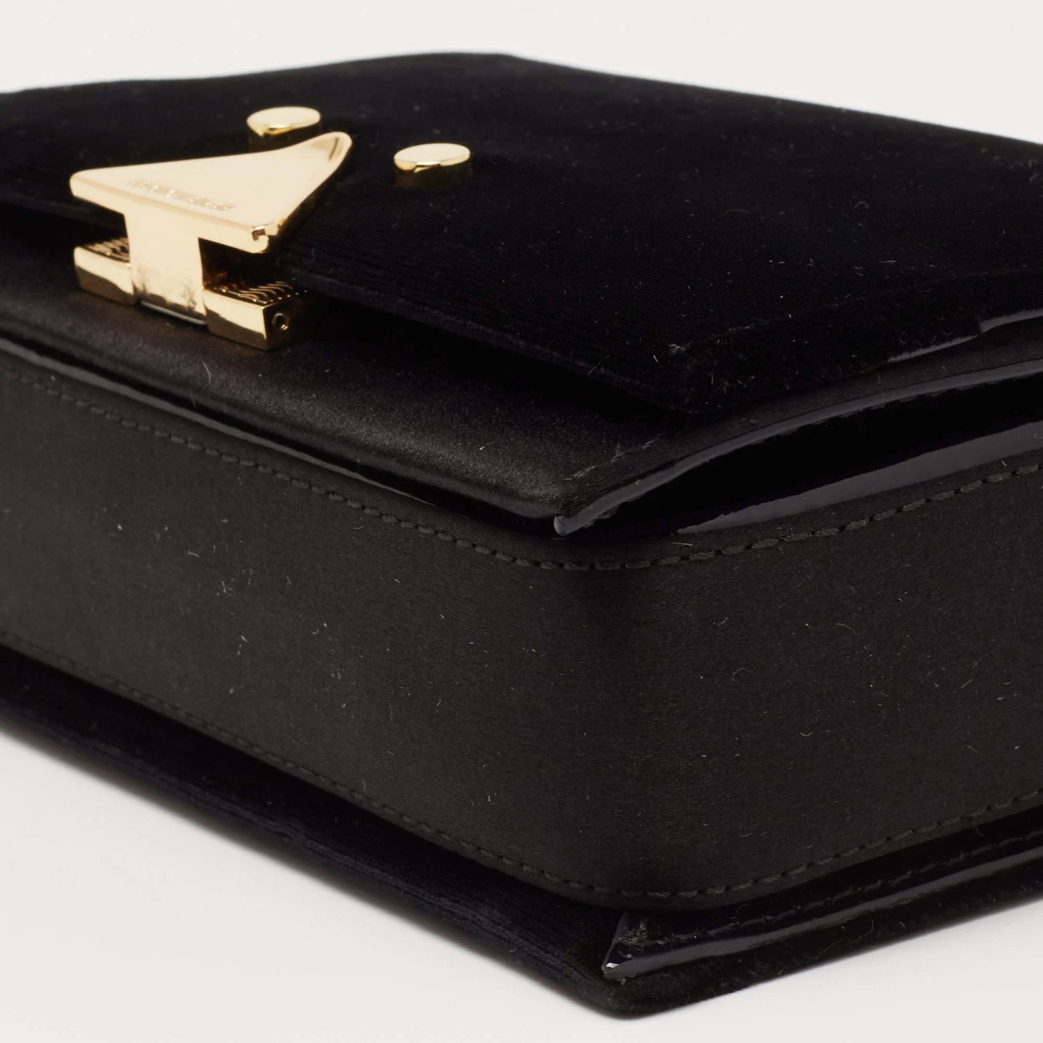 This black bag from Emporio Armani displays your fashion-forward choice when it comes to accessories. Crafted from velvet and satin, the shoulder bag is held by a chain-link strap and the front flap opens to a canvas-lined interior.