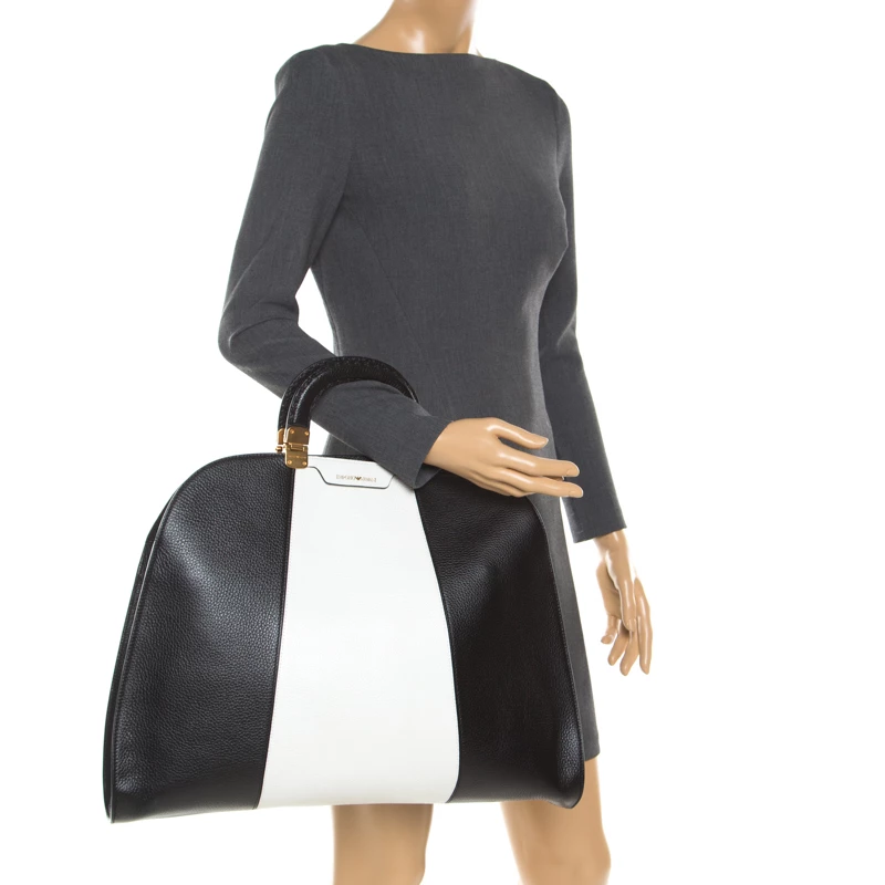 Carry this fabulous tote from Emporio Armani with elan and get set to make an impression! The black and white creation is crafted from leather and features a chic silhouette. It has been styled with dual top handles and opens to a spacious fabric-lined interior that can easily hold all your daily essentials. It is one piece that definitely needs to be on your wishlist!