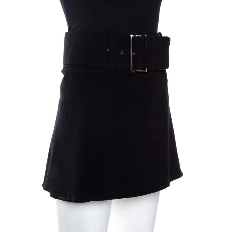 This mini skirt comes from the iconic house of Emporio Armani. It has been crafted from a wool blend and comes in a black shade. It has a belt detail with a large buckle that adds interest. It is great for formal occasions and is finished with a zip closure. Pair with a tucked-in top and you are good to go.