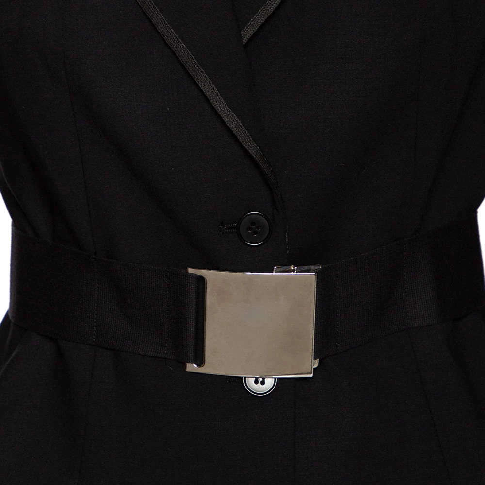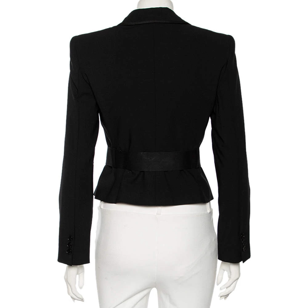 Create a statement look by wearing this contemporary blazer from Emporio Armani. This comfortable and stylish black blazer is designed from a wool blend and features a smart silhouette with notch lapels, long sleeves, and belt detailing. Use this appealing and posh creation to flaunt your stylish look.