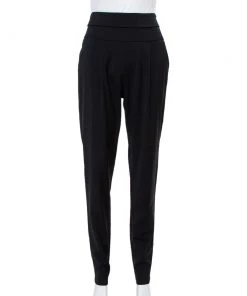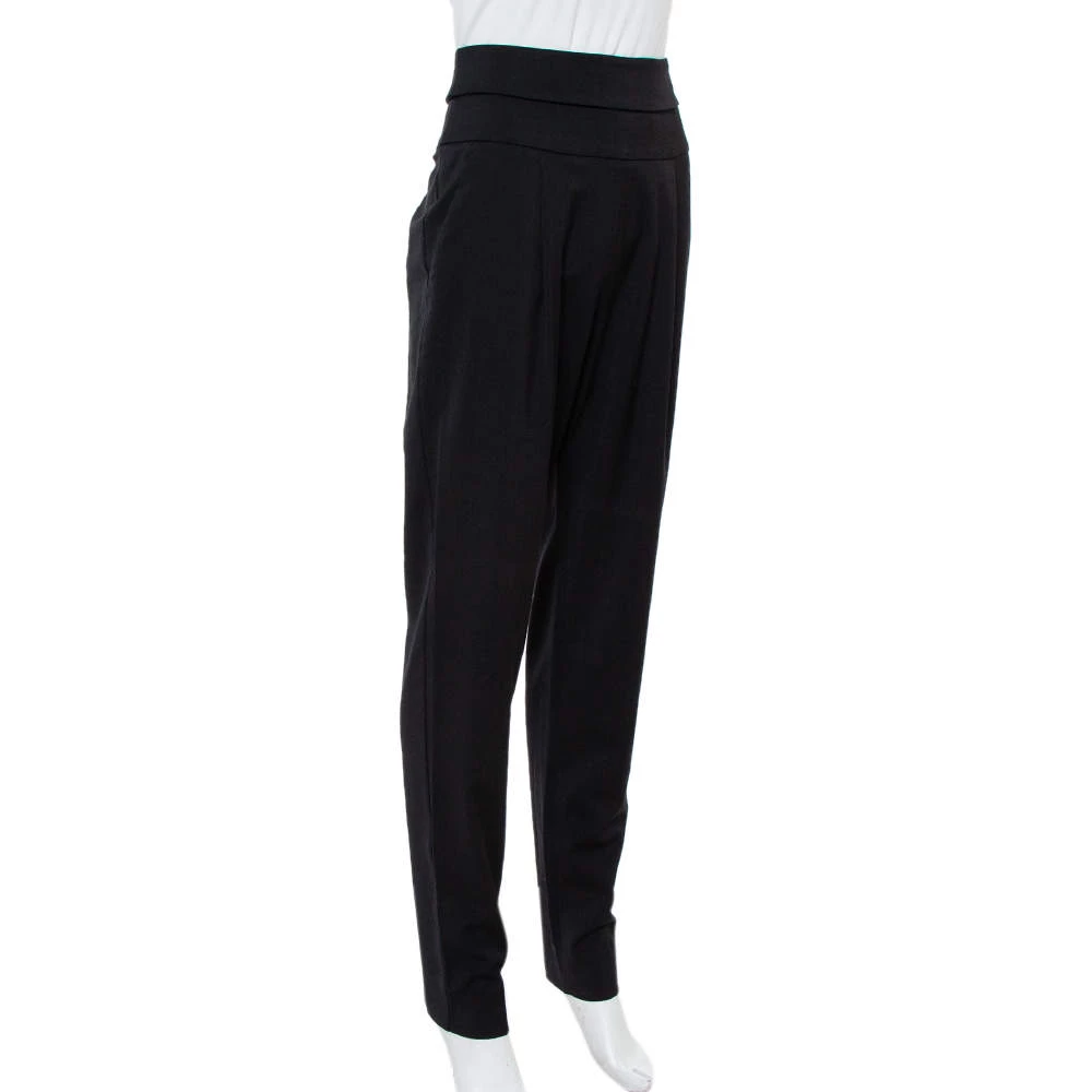 Emporio Armani creates iconic designs that seamlessly infuse their rich heritage with a contemporary aesthetic. These trousers are made from wool in a classic black shade. The high-waisted silhouette and a tapered fit complete them.