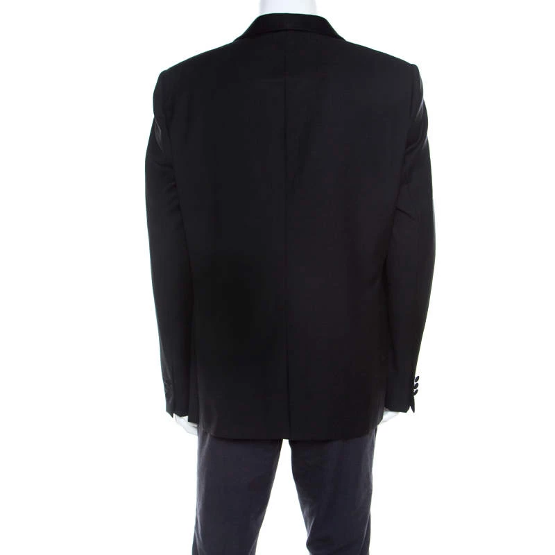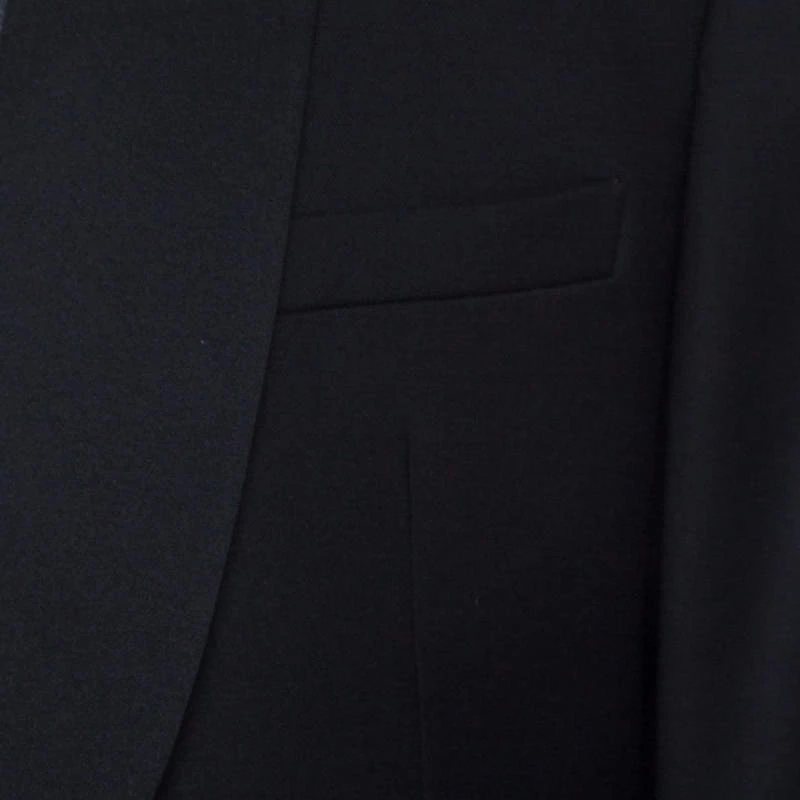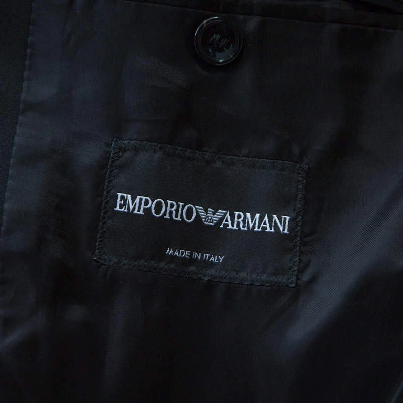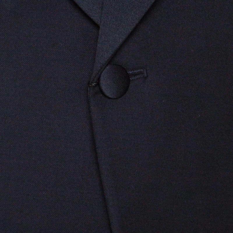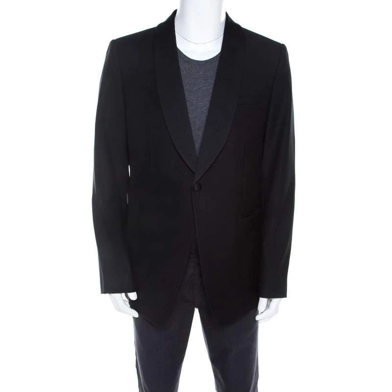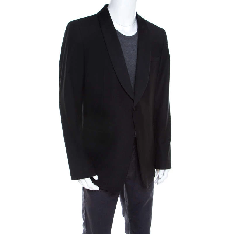 This Emporio Armani blazer renders outstanding style worth flaunting at any occasion. This black blazer is tailored into a sleek design and it features a single front button and satin shawl lapels. Spruce up your dresser with this staple formal creation.
