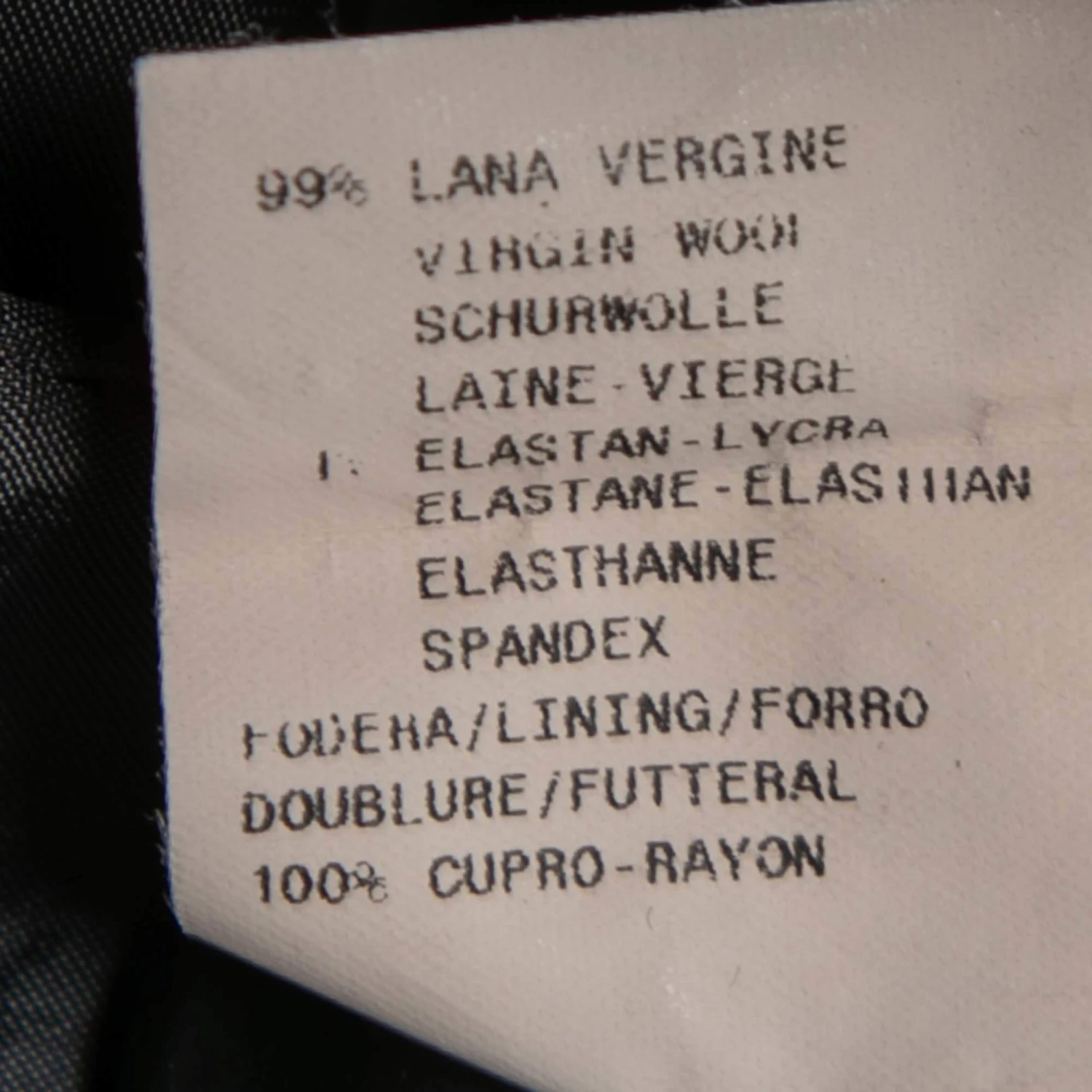 - Composition: Fabric: 96% Virgin Wool , 4% Elastane ; Lining: 100% Cupro
