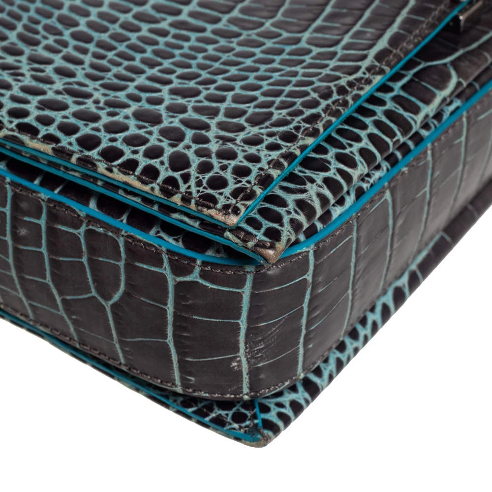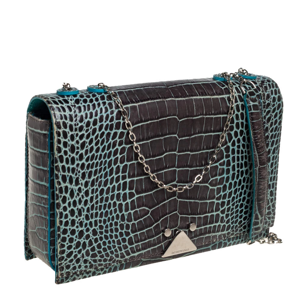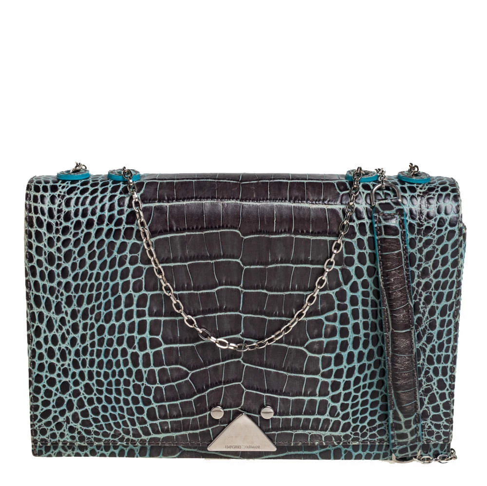 This crossbody bag by Emporio Armani is a great option for carrying your essentials. This croc-embossed leather bag has a compact size and a flap to secure the canvas interior. Designed to be ideal for everyday use, this crossbody bag is a must-have.