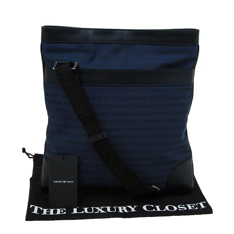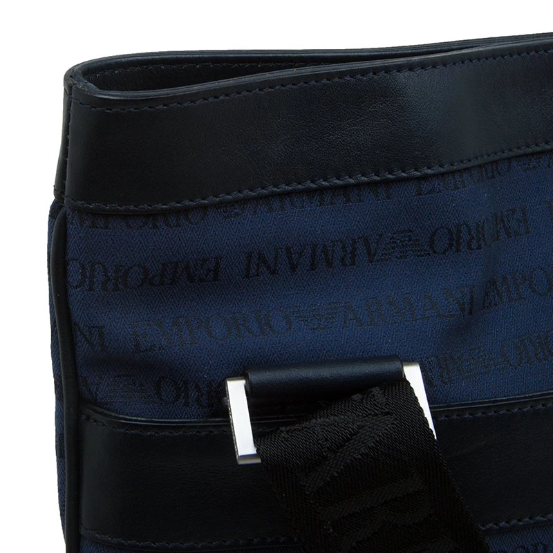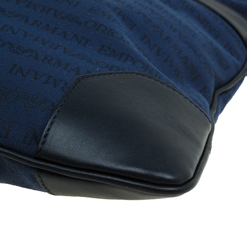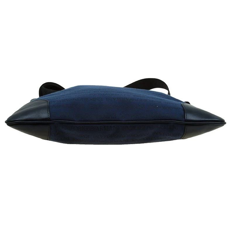 This simple and functional messenger bag by Emporio Armani will carry all your essentials effortlessly. Crafted from blue monogramed fabric, it is detailed with black leather and it features a an external pocket. It comes with black canvas strap supported with silver-tone hardware. Secured with a top zip closure, the interior is lined with nylon.