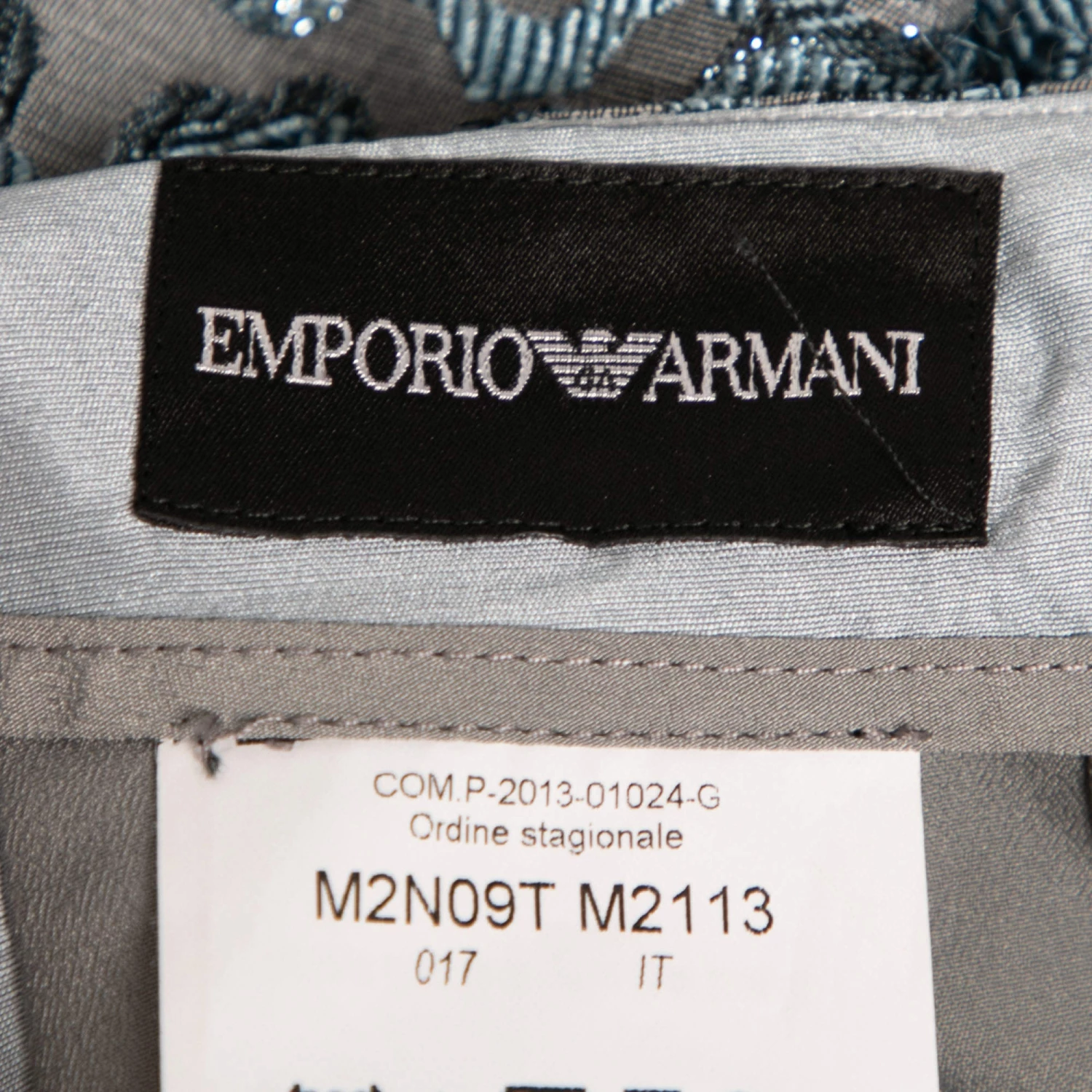 This short skirt from Emporio Armani will deliver a sense of femininity and beauty to your attire. It is made from blue brocade fabric and is enhanced with pleated formations. It is provided with a zipper closure. Match this skirt with your favorite blouse and look nothing but gorgeous.