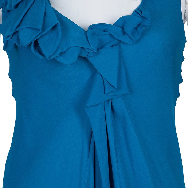 Emporio Armani gives us this stunner, cut from fine silk, with its beautiful ruffled detail at the U neck. This sleeveless dress with gathered drape at the front, features a rear zip fastening for extra comfort.