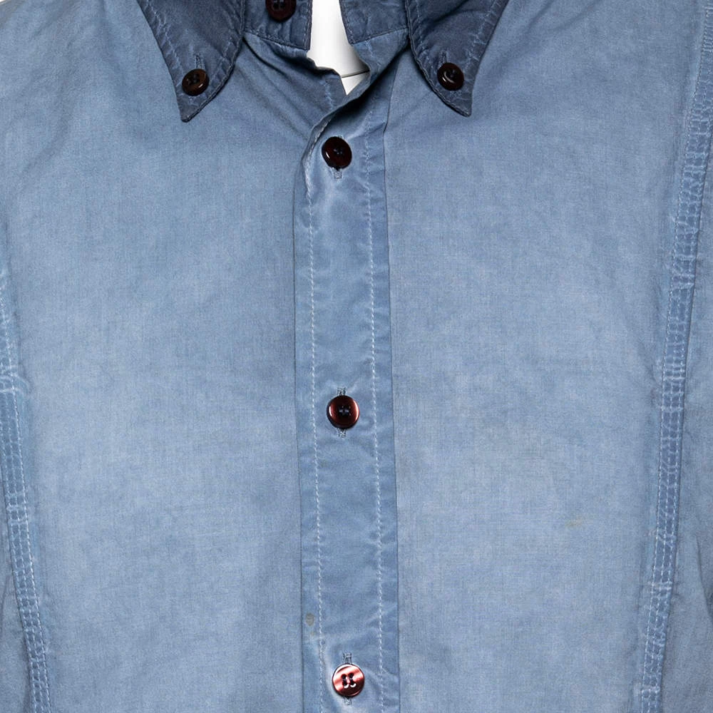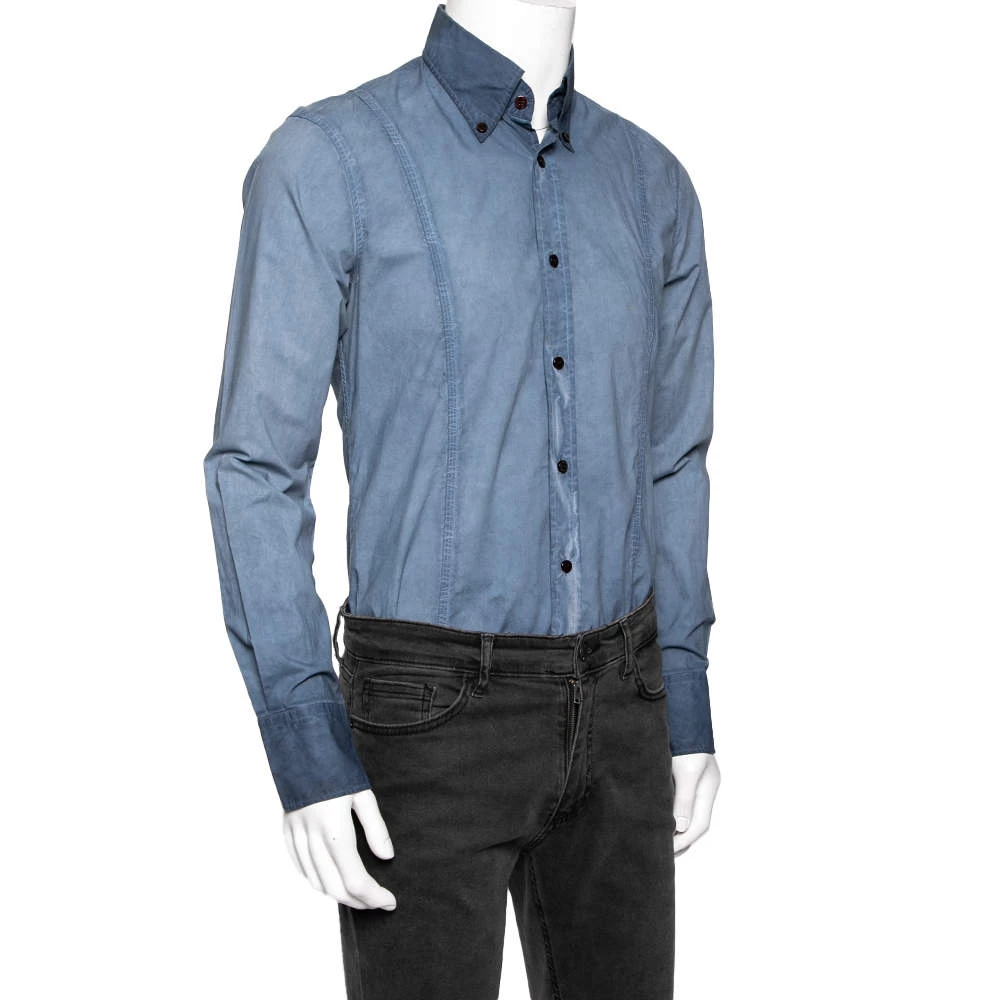 Emporio Armani shirts are designed with a focus on both comfort and luxury so that you can wear them for a long time. This simple creation is tailored from quality materials and comes in a blue shade and neat stitches details. Long sleeves and a buttoned front design make the shirt complete.