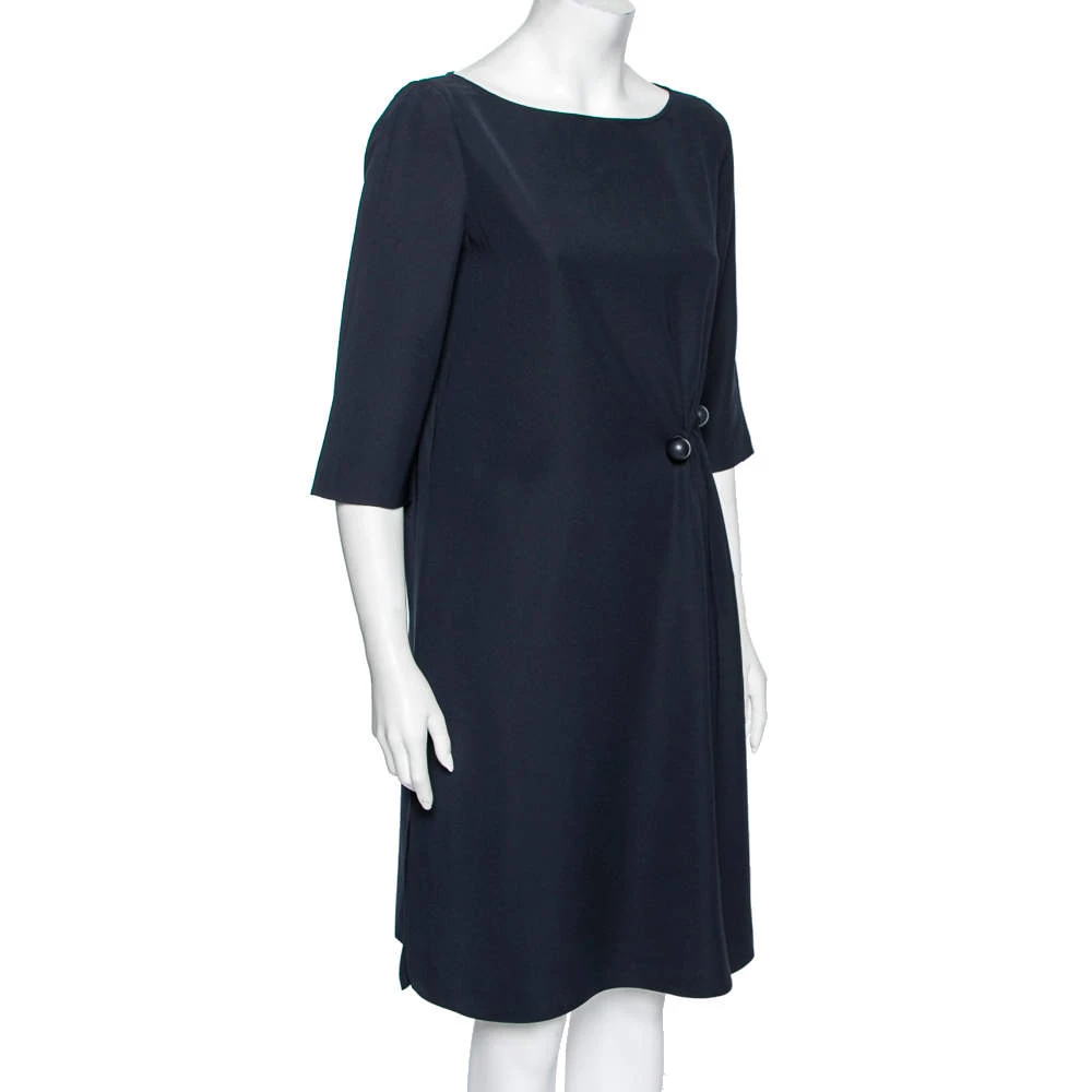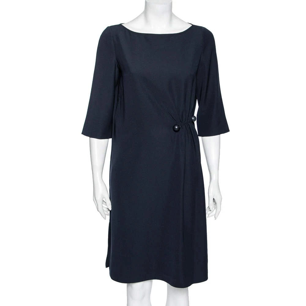 This dress from the House of Emporio Armani is going to make you look gorgeous! It is designed using blue crepe fabric, with pleated formations on one side. Wear this dress with pumps and look stunning!