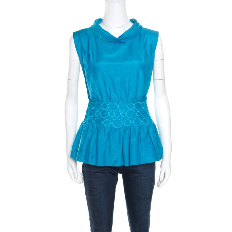 Emporio Armani’s top, made from a cotton and silk blend, is a lovely piece to don an understated yet chic ensemble for your casual look. Beautifully embroidered at the waist, this sleeveless top is pleated below the bust creating a loose peplum shape. It works best when styled with your regular jeans and heels.