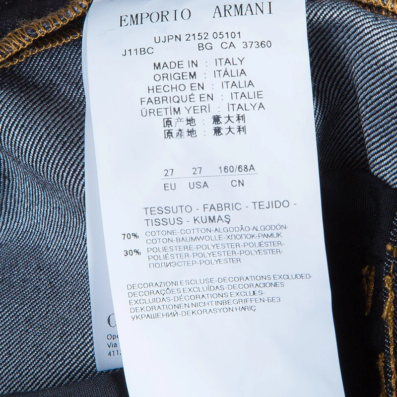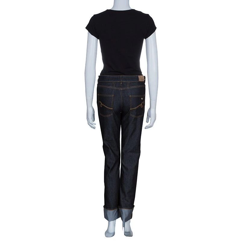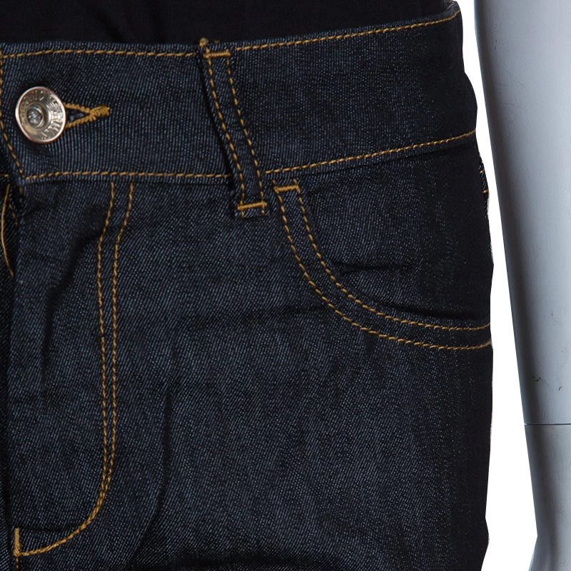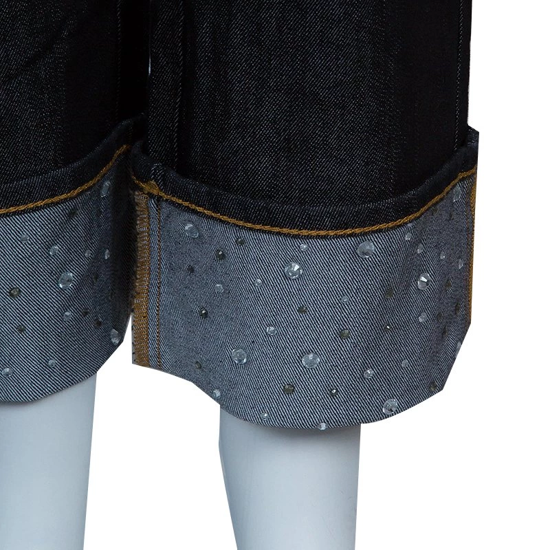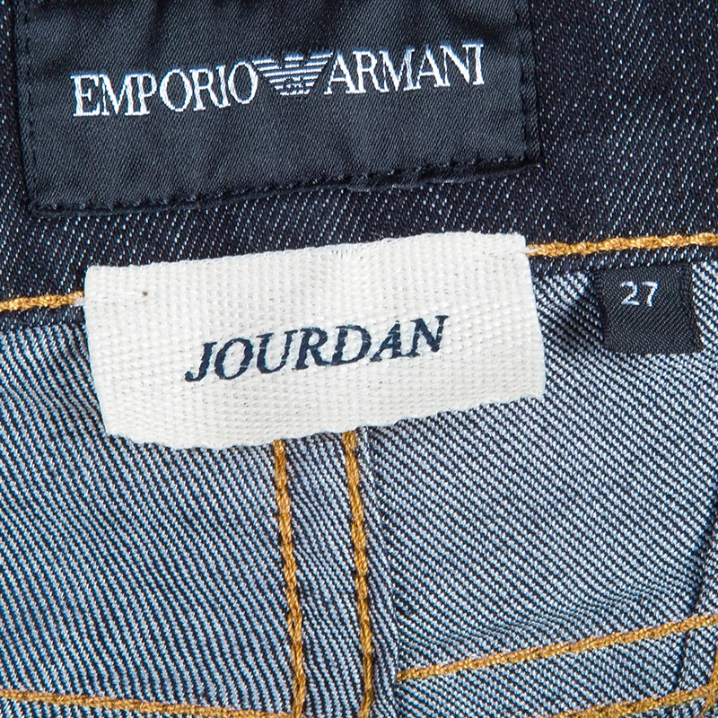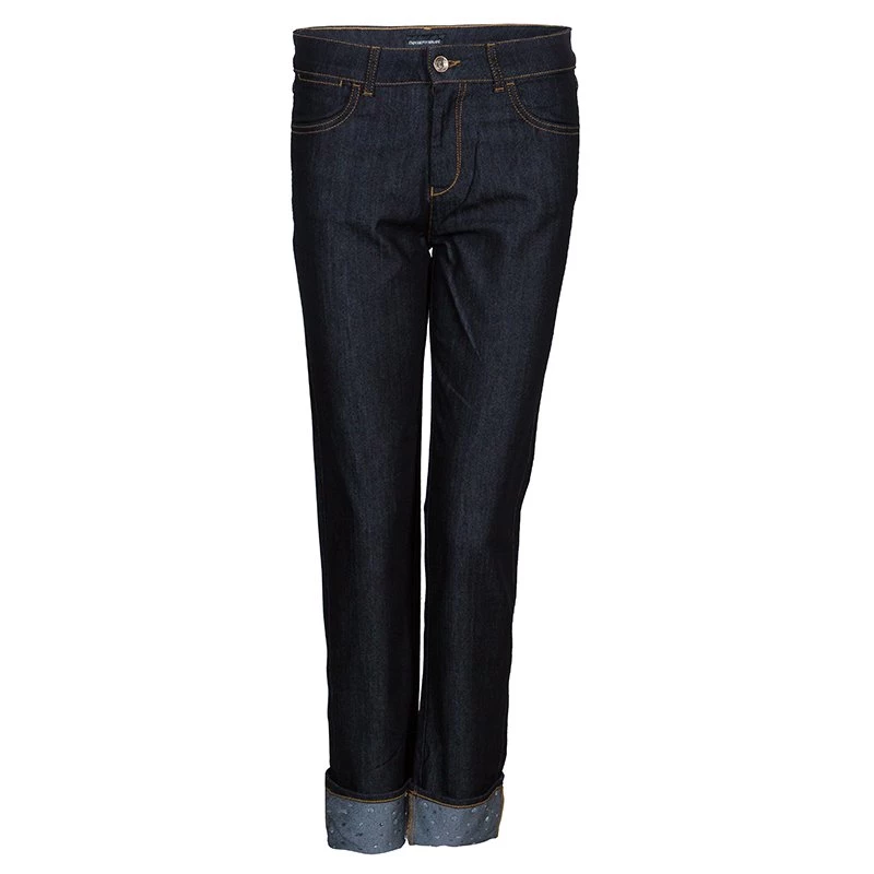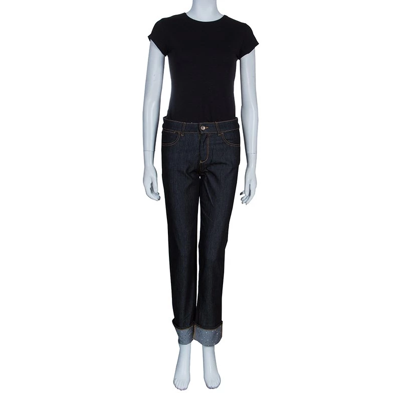 These Jourdan jeans from Emporio Armani are going to be on everyone’s must-have list. Conventional and minimalistic, these jeans feature two slip pockets on the front and another set of pockets on the back. These straight fit blue jeans come with a zip closure and a button fastening. The folded bottoms are beautifully embellished with crystals.