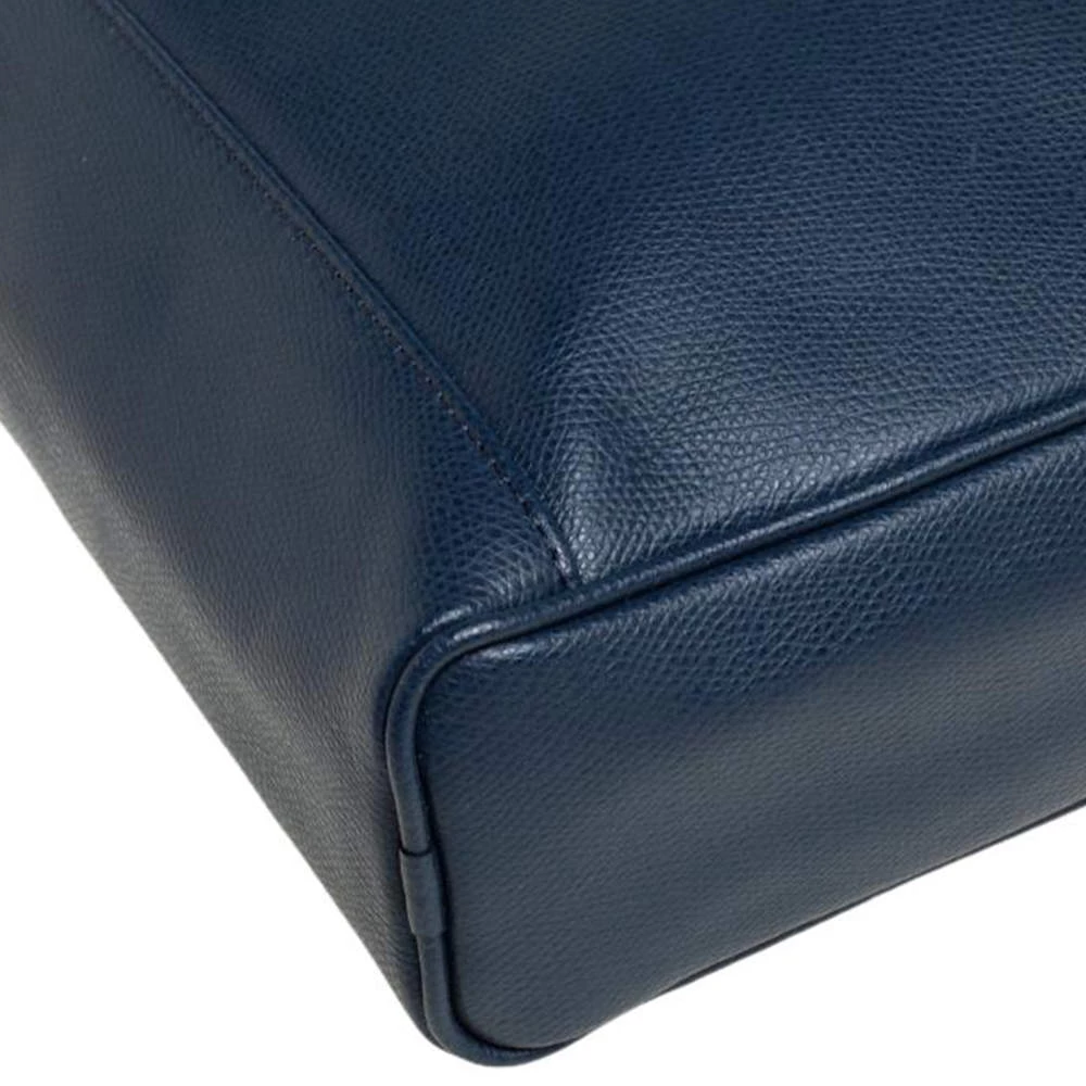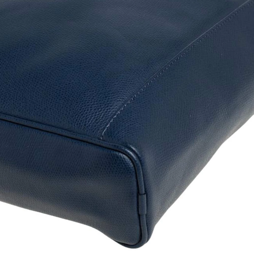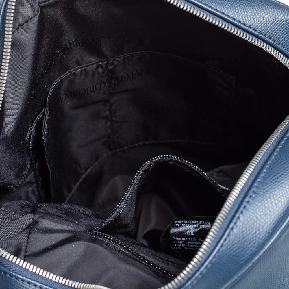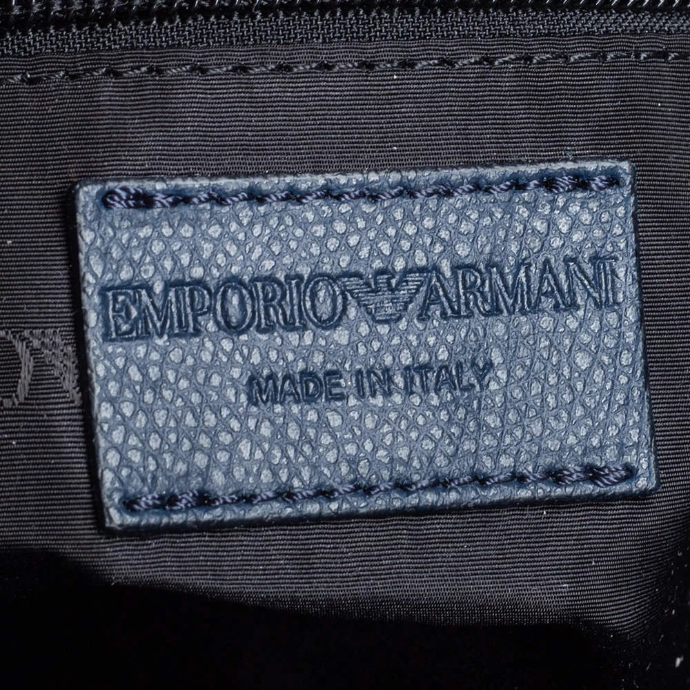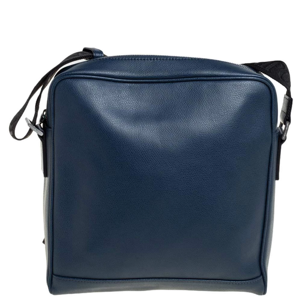 Crafted from fine leather, this Emporio Armani messenger bag is perfect for everyday use. Its exterior carries a blue hue and a slip pocket at the front. It has an adjustable shoulder strap with silver-tone hardware. The interior is lined with fabric.
