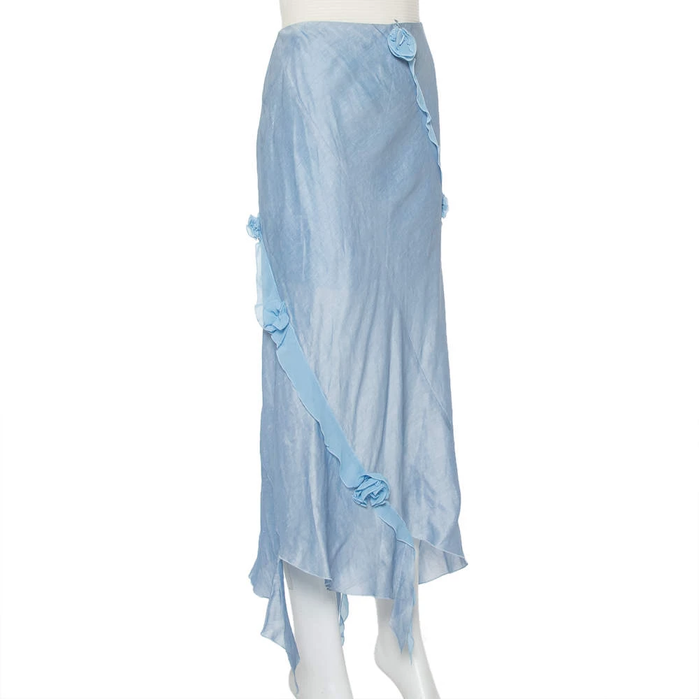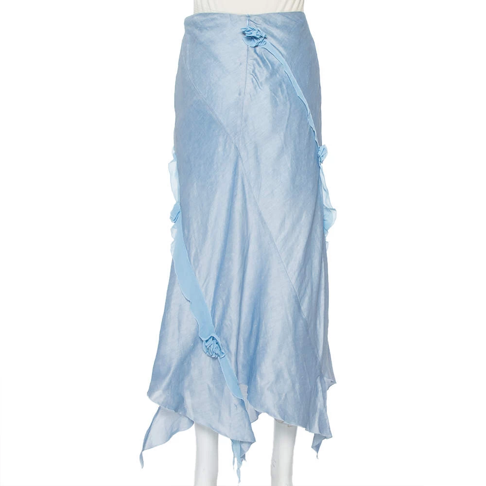 The fashion house Emporio Armani, from its wide range of products, brings to you this midi skirt. Wear it to a party or a brunch with friends. Crafted from linen & silk, this blue-hued skirt has beautiful floral applique work and a zip closure.