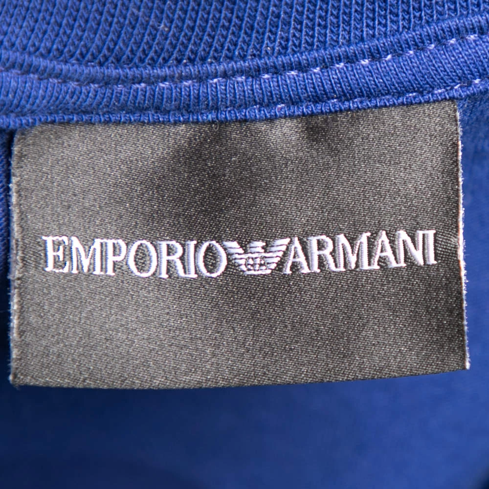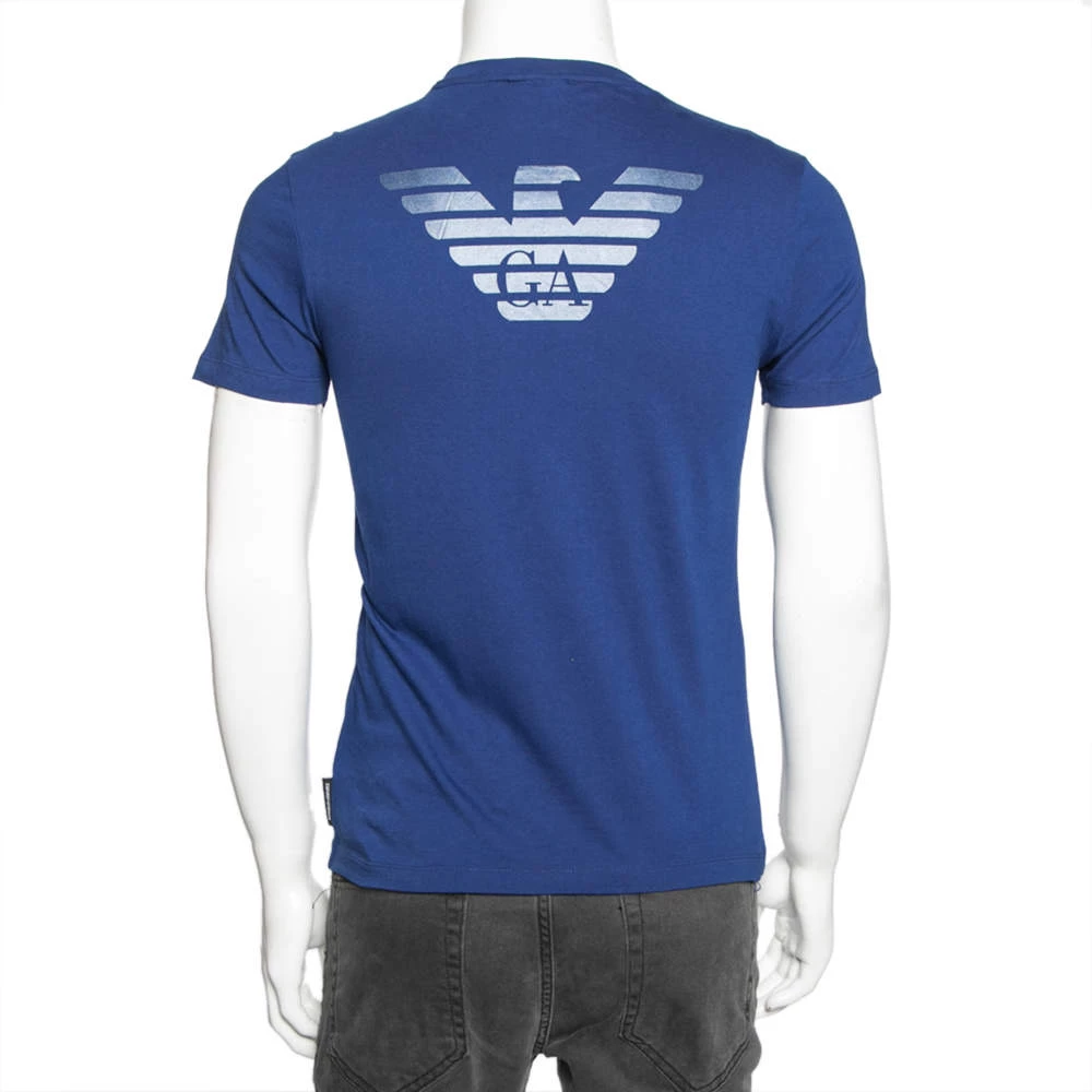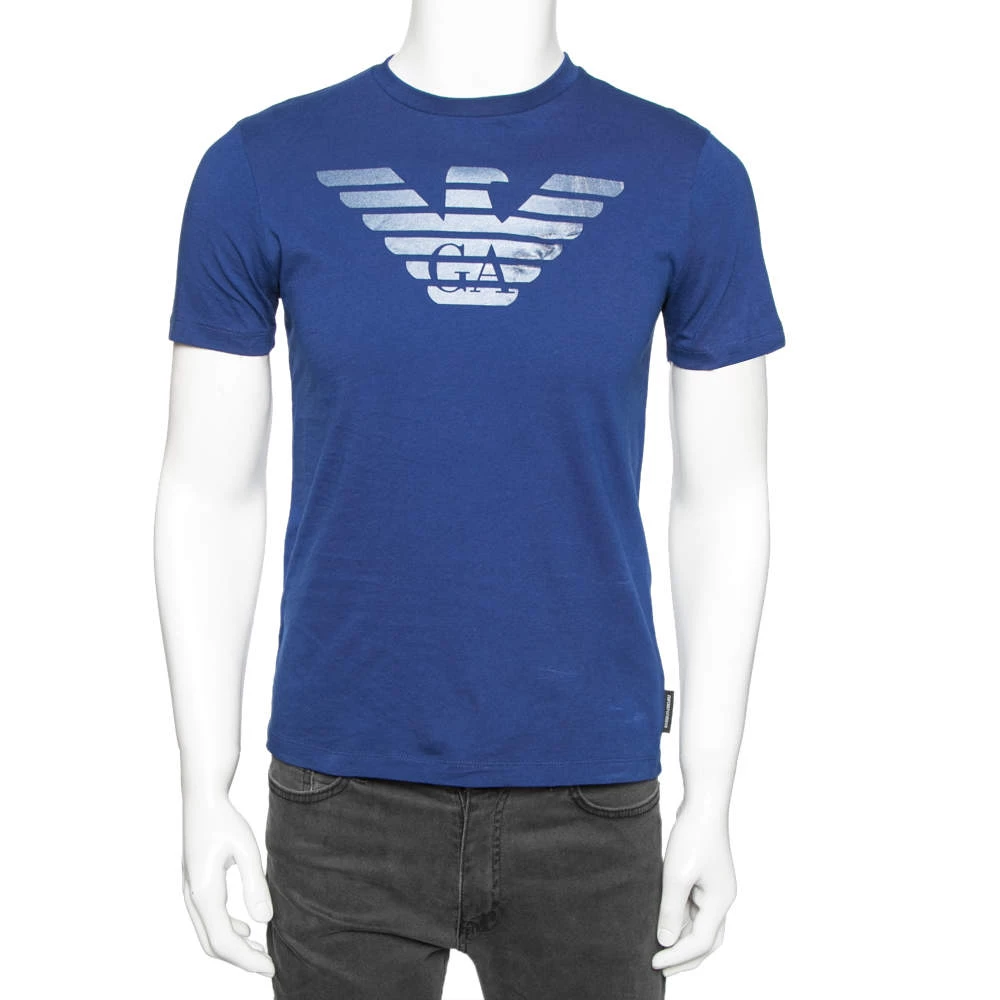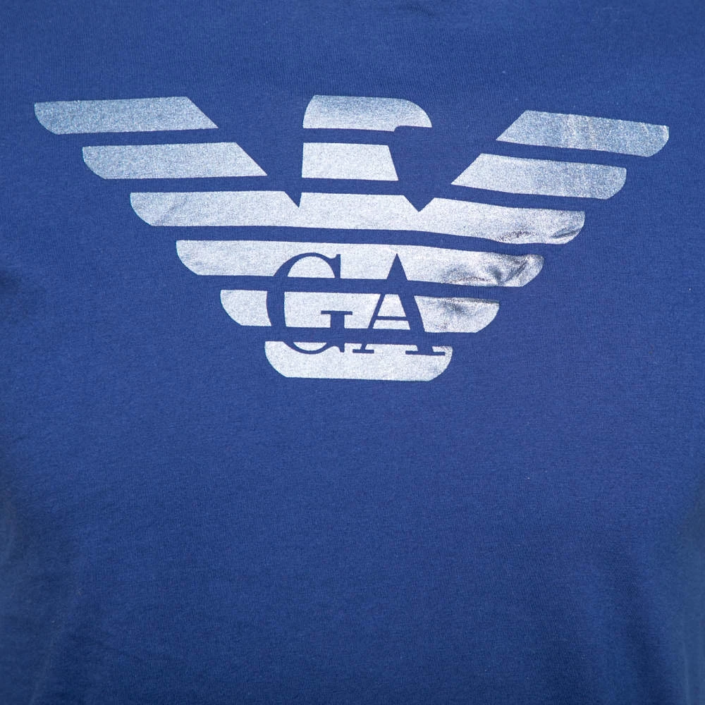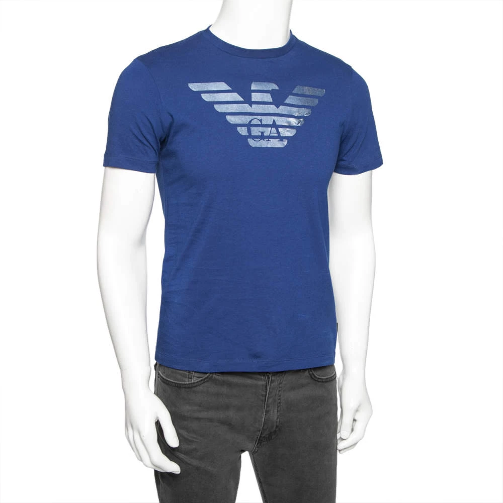 This casual T-shirt hails from the house of Emporio Armani. It has been tailored from cotton and comes in a lovely shade of blue. The front and back feature the logo for a signature finish. The short sleeves, crew neckline and comfortable silhouette finish the T-shirt.