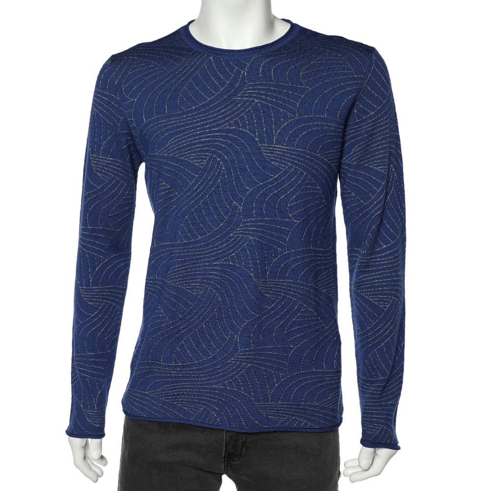 Let your winter closet be full of style and comfort with this stunning sweater from the House of Emporio Armani. It is stitched using blue patterned knit fabric and showcases a crewneck and long sleeves.
