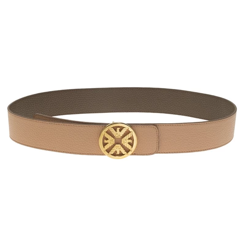 Wear this comely Reversible belt by Emporio Armani, for an exquisite style statement. Crafted in beige and brown leather, the belt features gold-tone hardware embellishment. Wear it wth denim jeans or adorn it to accentuate that ravishing dress for a comely appearance.