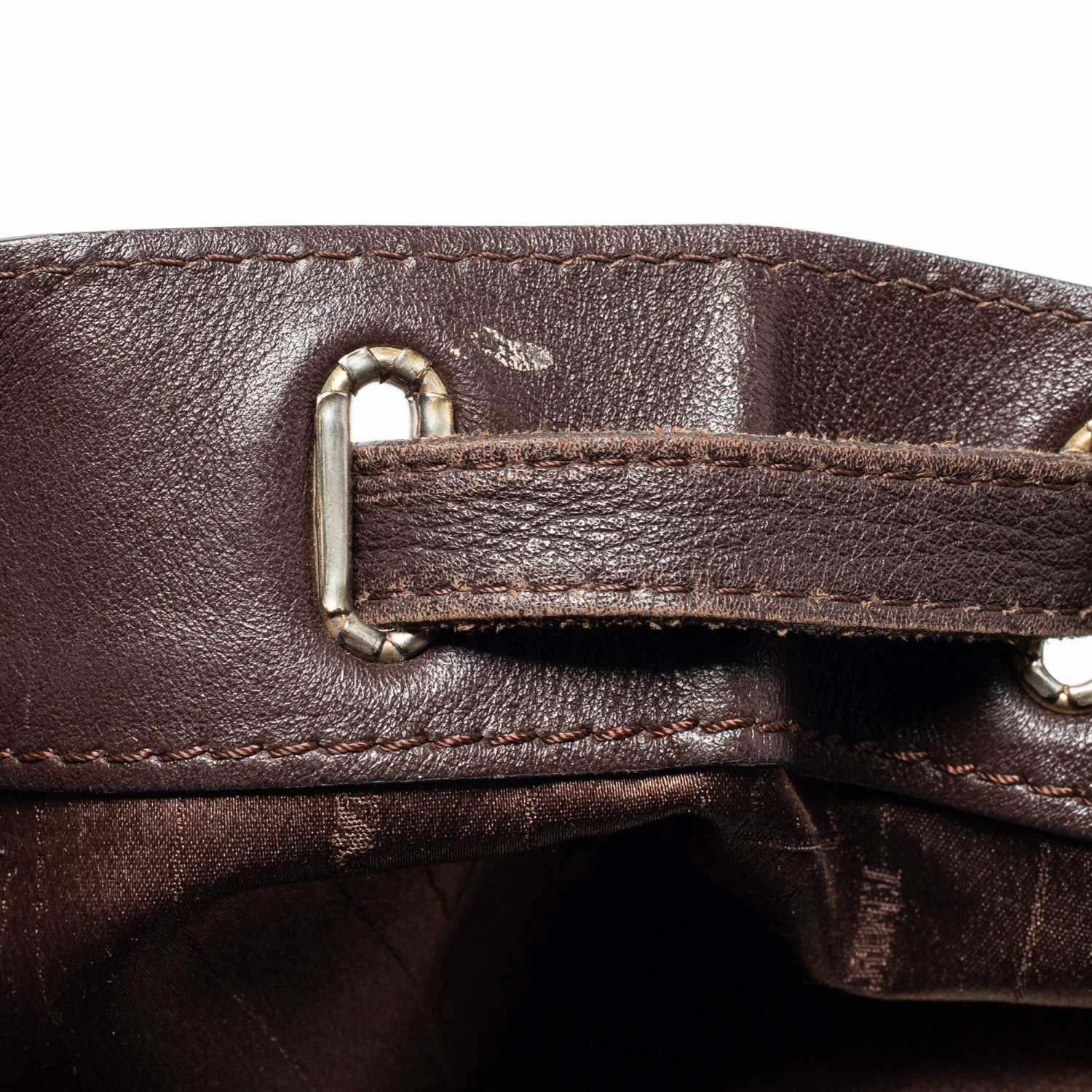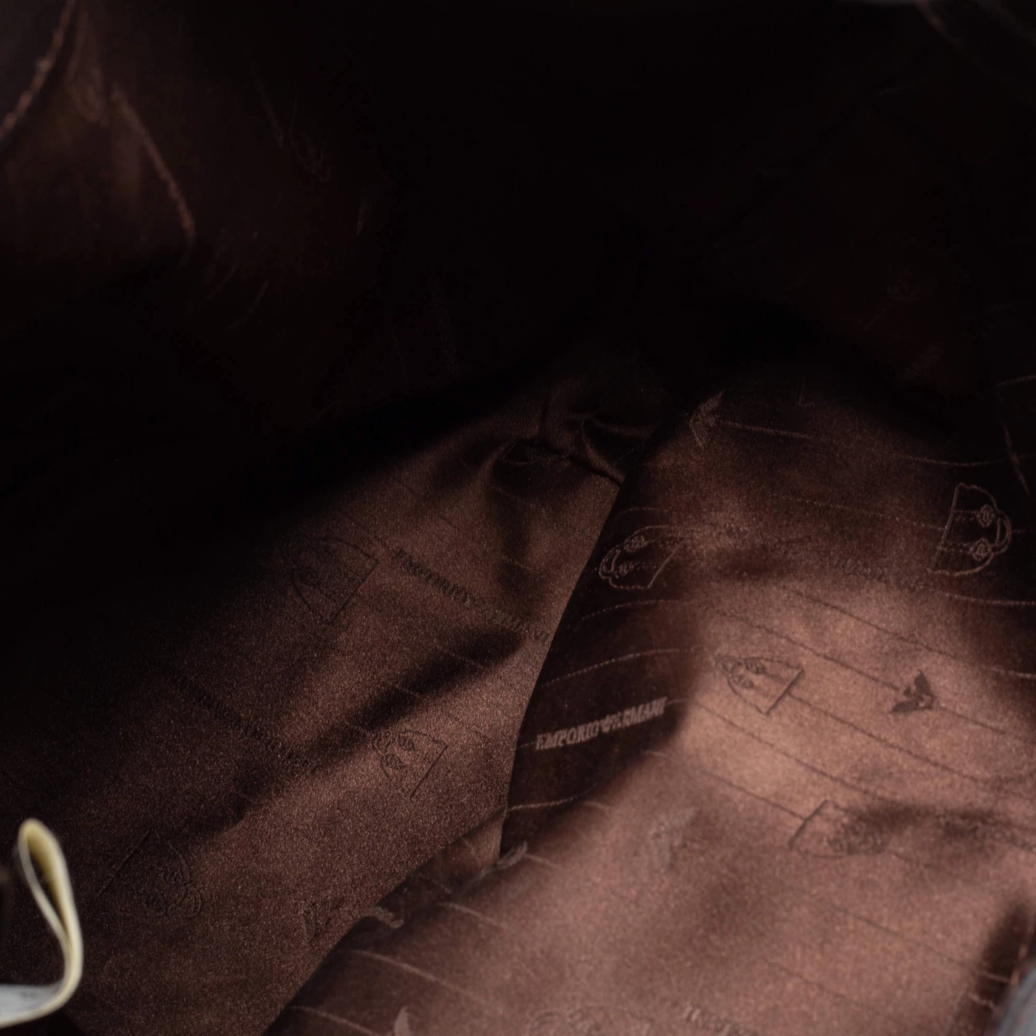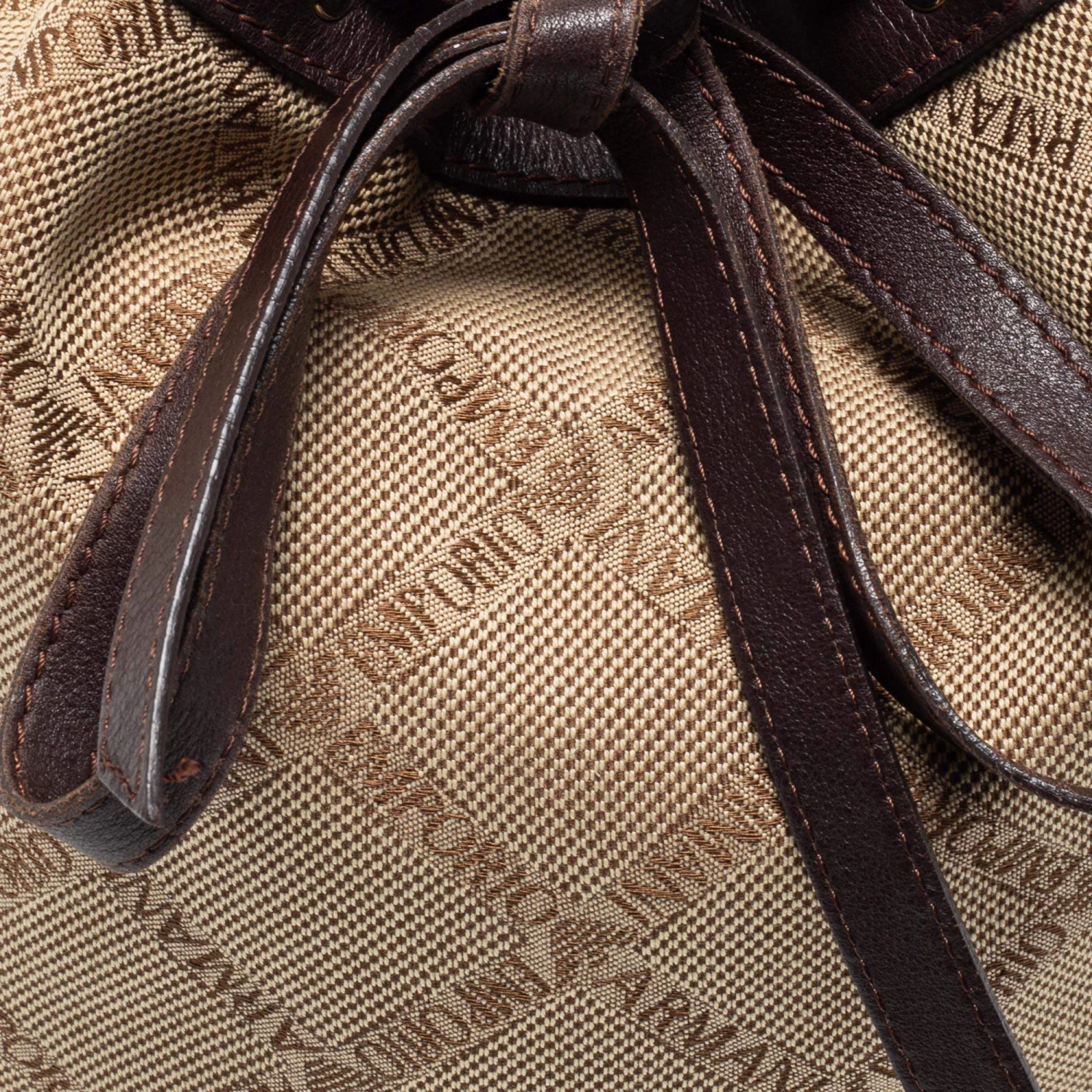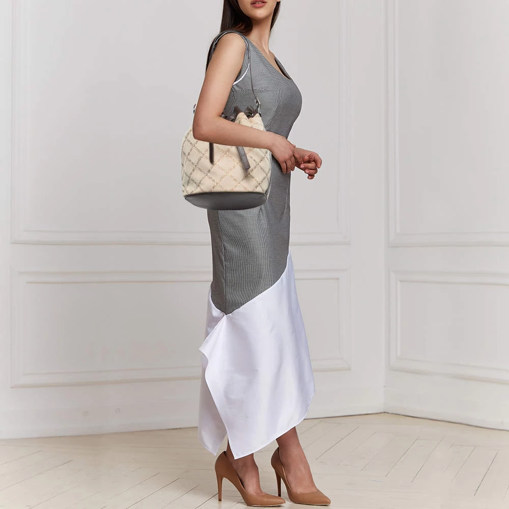 This classy, functional Emporio Armani bucket bag presents itself in signature fabric and leather, secured by a drawstring. Carry your everyday essentials in the fabric-lined interior of this bag.`