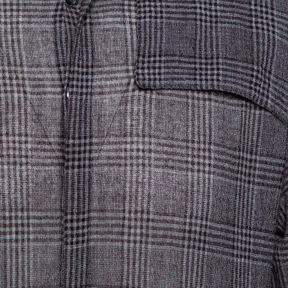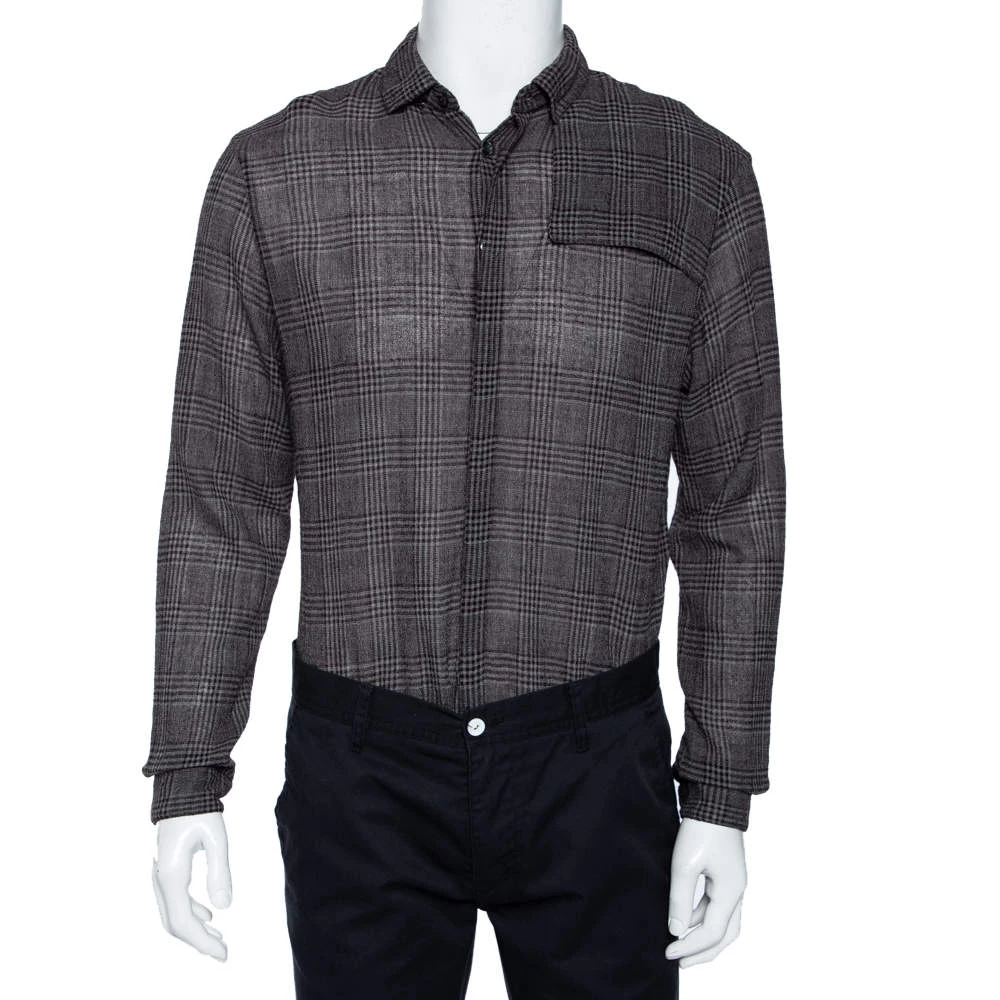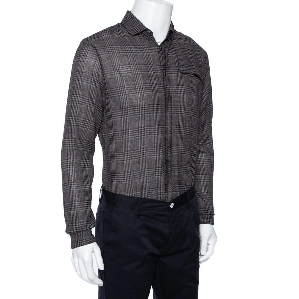 Shirts are an indispensable part of a man’s wardrobe, so Emporio Armani brings you a creation that is both versatile and stylish. It has been knitted from a cotton blend in a brown shade. The shirt is detailed with a checkered pattern and an overlay detail.