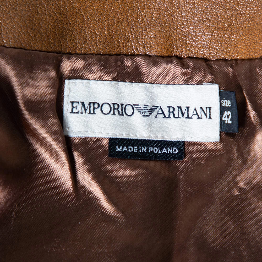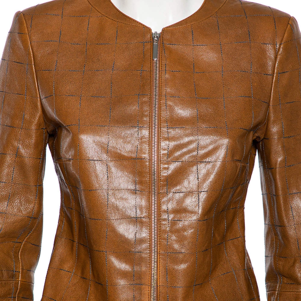Flaunt your exceptional taste in fashion as you wear this jacket from the House of Emporio Armani. It has been designed using brown Checkered leather, which gives it a luxurious look. This jacket features a zip-front detail, zipped cuffs, and long sleeves. Look absolutely polished as you don this jacket.